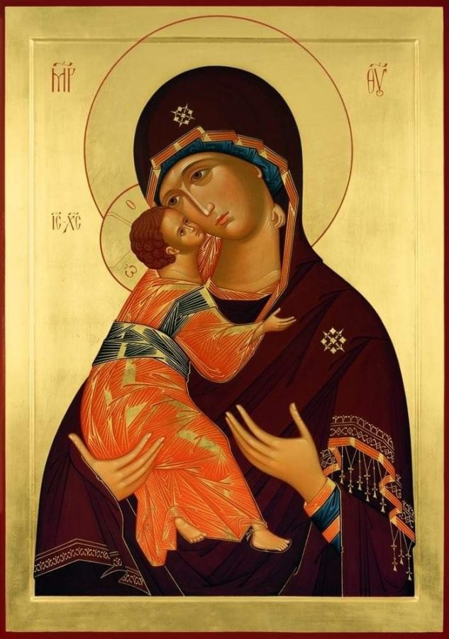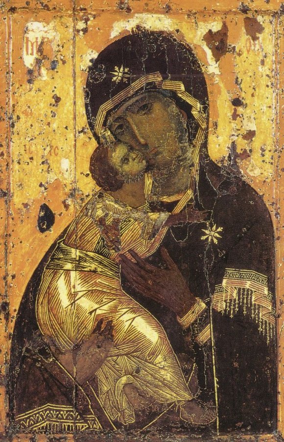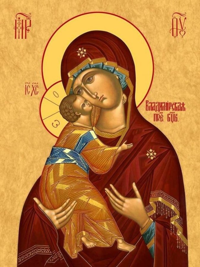 Владимирская икона Божией Матери написана Евангелистом Лукой на доске от стола, за которым трапезовал Спаситель с Пречистой Матерью и праведным Иосифом. Божия Матерь, увидев этот образ, произнесла: "Отныне ублажат Меня все роды. Благодать Рождшегося от Меня и Моя с этой иконой да будет".
