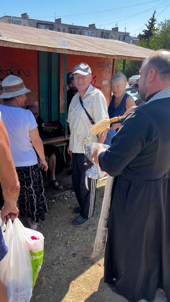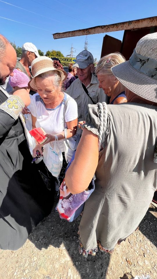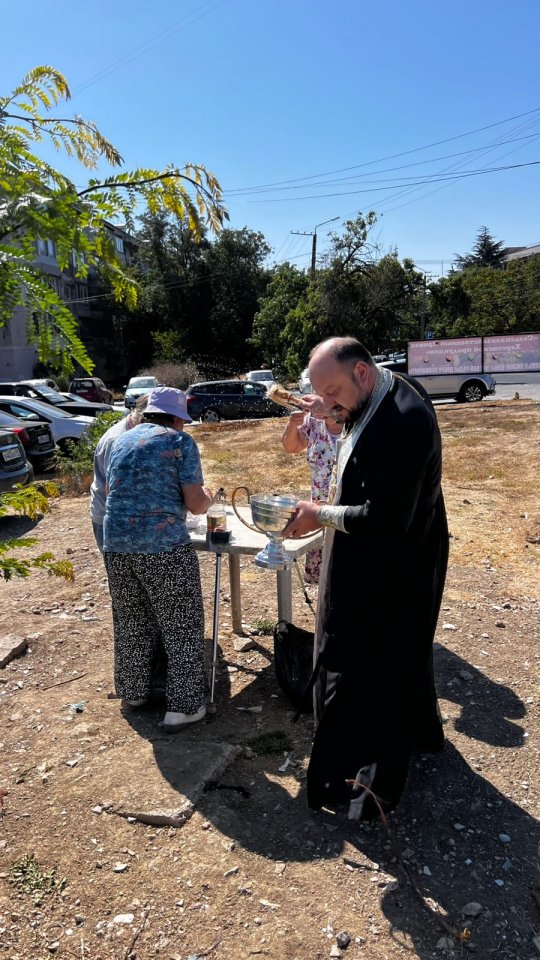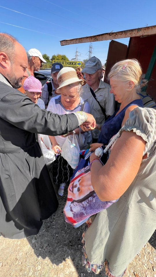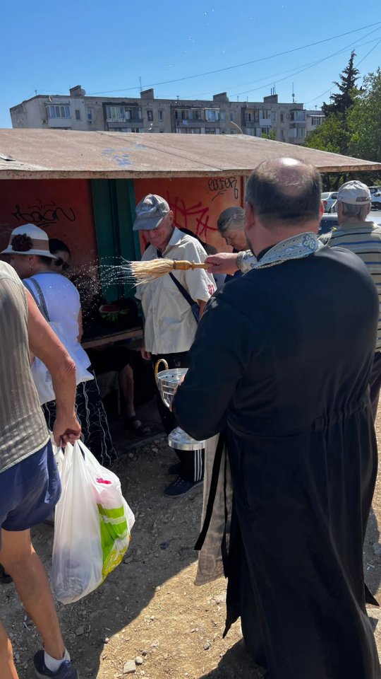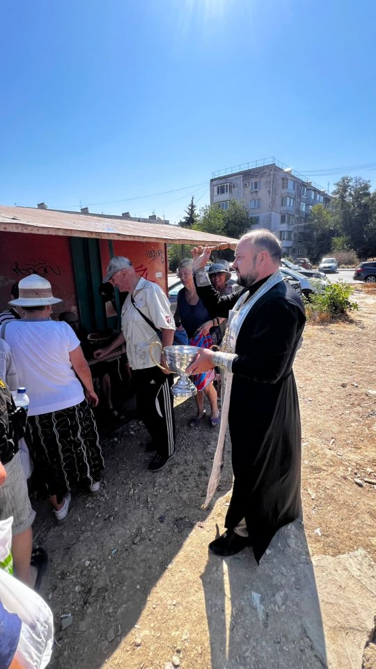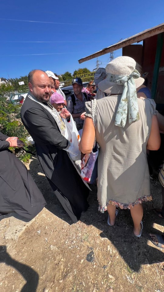 Отец Игорь отслужил молебен, окропил всех святой водой, сказал проповедь о празднике Преображения Господня, принял исповедь, побеседовал с людьми. Не обошлось и без вкусняшек: батюшка раздал яйца, бутерброды и конфеты.