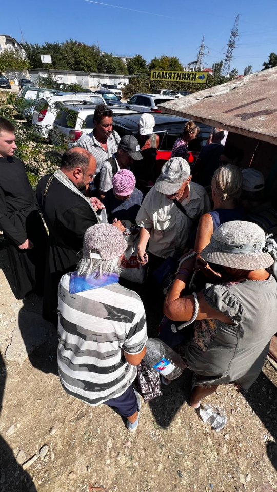 Продолжается помощь священнослужителей малоимущим, приходящим на бесплатные обеды на Силаевский рынок. 19 августа, в праздник Преображение Господня, к ним снова приехал настоятель храма святителя Спиридона Тримифунтского иерей Игорь Крылов.
