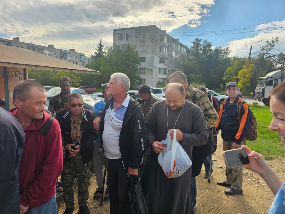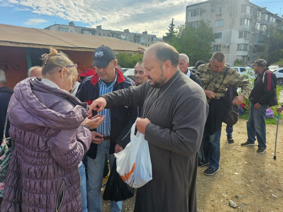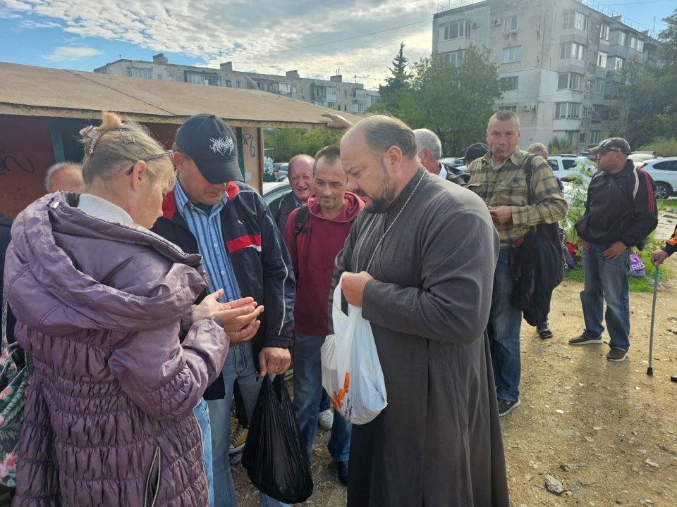 Отец Игорь отслужил молебен, окропил всех святой водой, сказал слово проповеди по воскресному Евангелию, побеседовал с людьми, некоторым помог материально. Не обошлось и без вкусняшек: батюшка привез вареные яйца, бутерброды, конфеты.