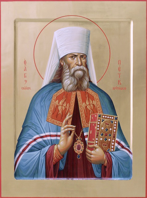 О, святый священномучениче Петре, святителю славный земли Русския, архиерейство, яко крест в годину лютых испытаний, приемый, чашу горькую страданий испивый, и престол патриарший добре соблюдый, верою вся претерпевый и смирением благодать велию стяжавый!