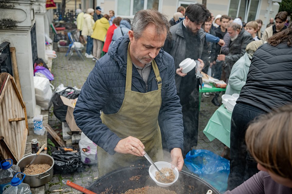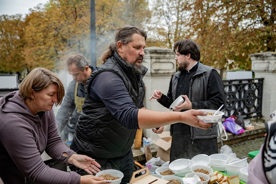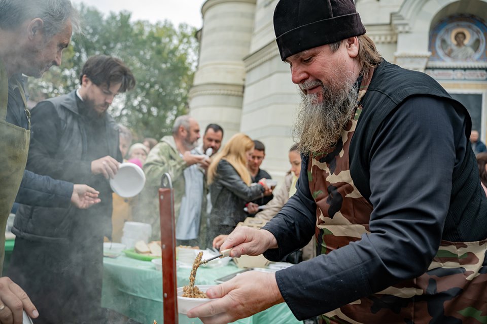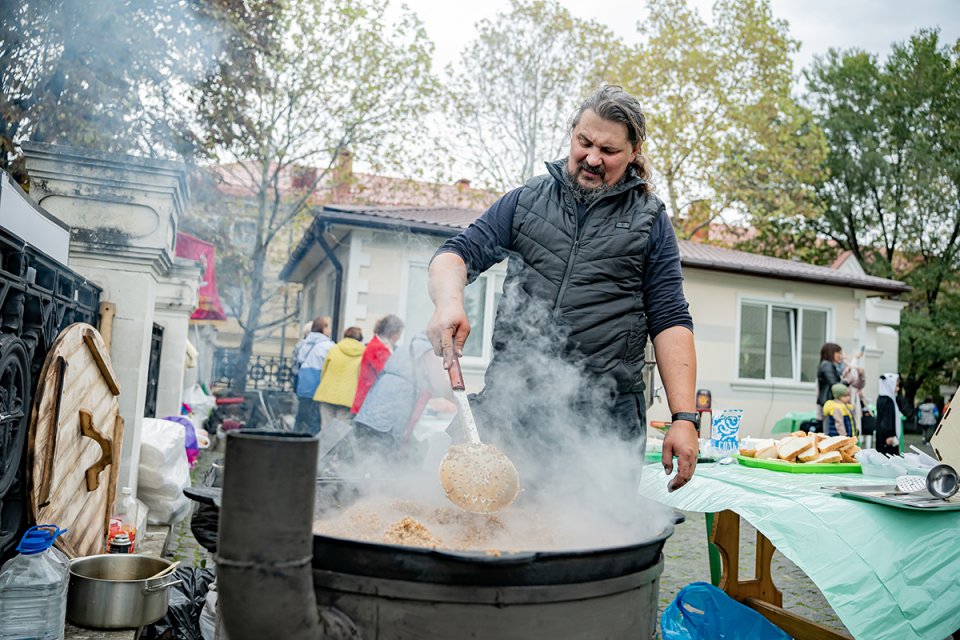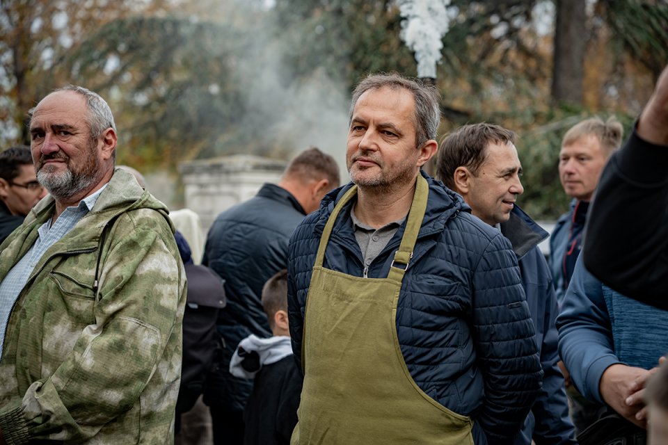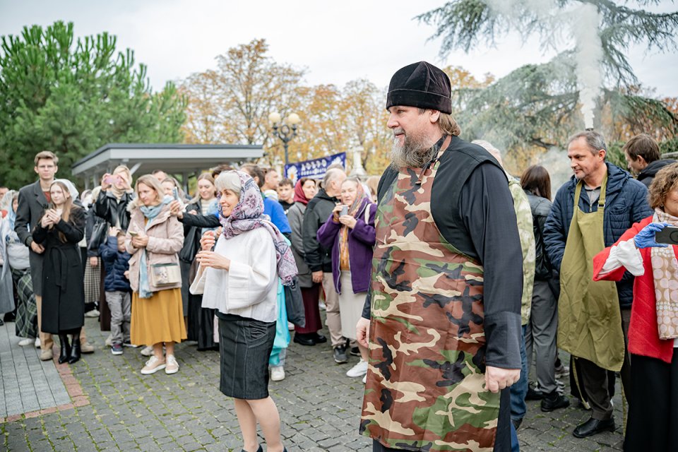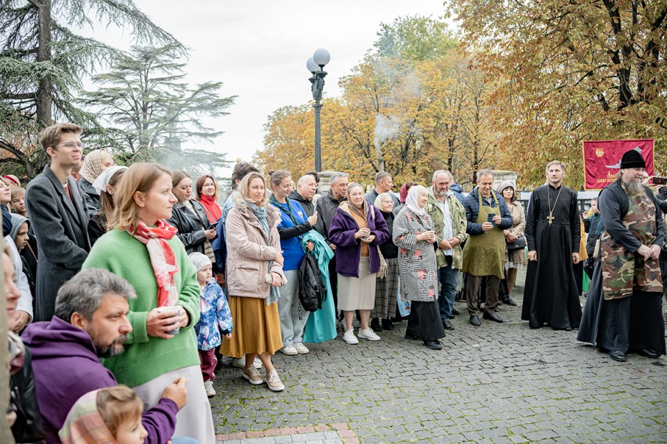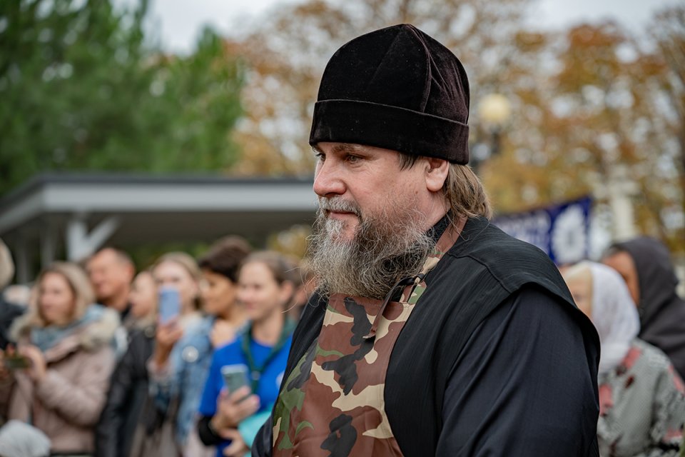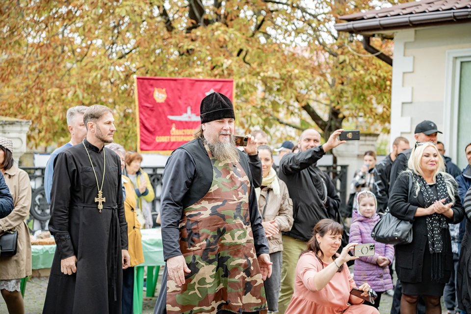 Конечно, не обошлось и без уже ставшей традиционной «Батюшкиной каши», которую ждут на каждой ярмарке посетители, которую по фирменному рецепту готовит для севастопольцев на костре настоятель Владимирского собора протоиерей Сергий Халюта. Раздавать кашу гостям праздника ему помогал Уполномоченный по правам человека в г. Севастополе Павел Юрьевич Буцай.