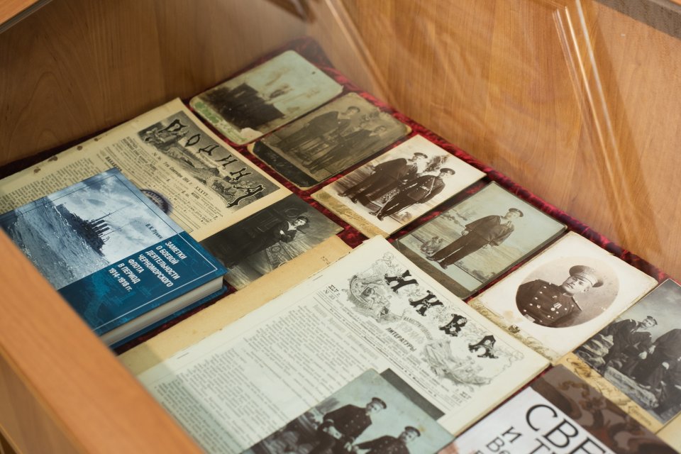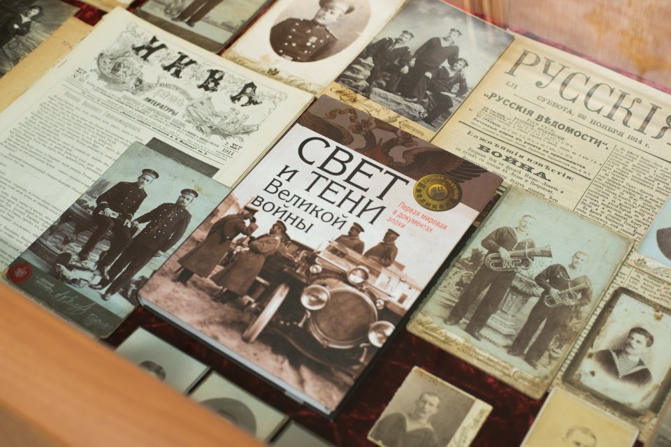 Отдельным тематическим блоком стала историко-документальная выставка, предоставленная ответственным секретарем регионального отделения Российского исторического общества Вадимом Николаевичем Прокопенковым.