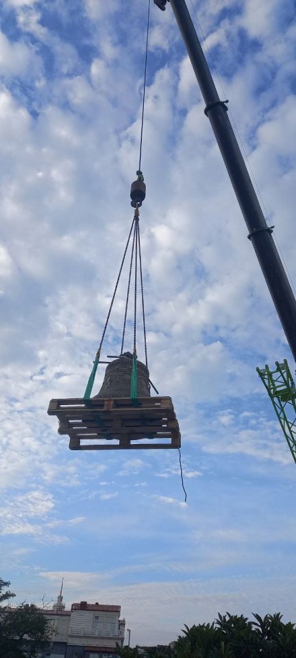 В сентябре 2025 года на верхний ярус колокольни, при помощи спецтехники, подняты большие колокола.
