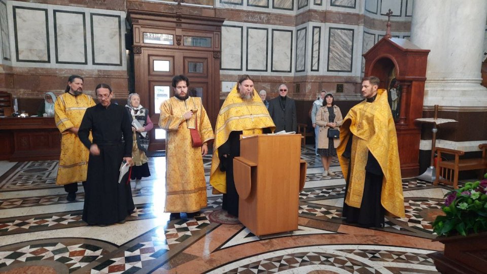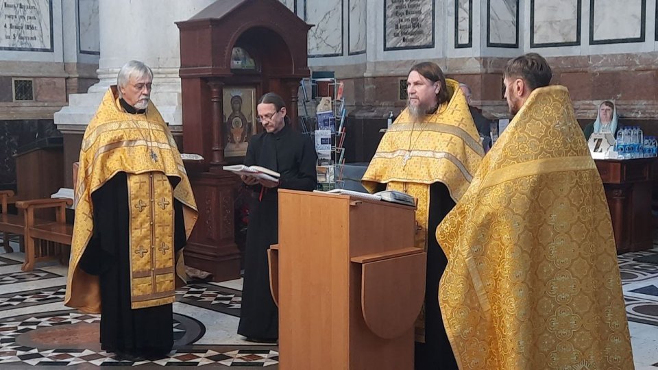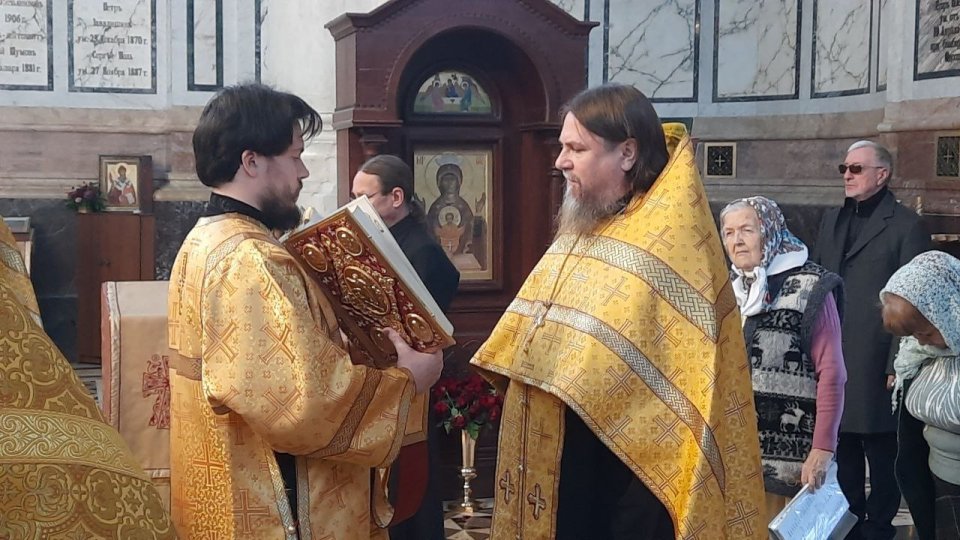 В день памяти святого праведного воина Феодора Ушакова в Свято-Владимирском соборе-усыпальнице адмиралов отслужен молебен
