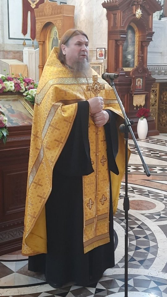 По окончании молебного пения отец Сергий обратился к пастве со словом проповеди, в которой еще раз напомнил историю чудесного спасения иконы святого воина Феодора Ушакова, находящейся в штабе Черноморского флота после ракетного удара по штабу и последующего пожара. Эта икона, получившая незначительные повреждения, сейчас открыта для поклонения во Владимирском соборе.