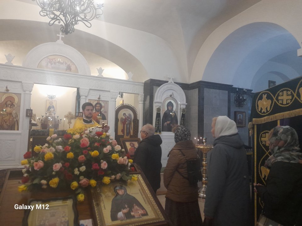 Началось посещение монастыря с Божественной литургии в нижнем храме Свято-Троицкого собора. После службы все помолились с протоиереем Сергием Поливцевым у мощей игуменьи монастыря святой Параскевы.