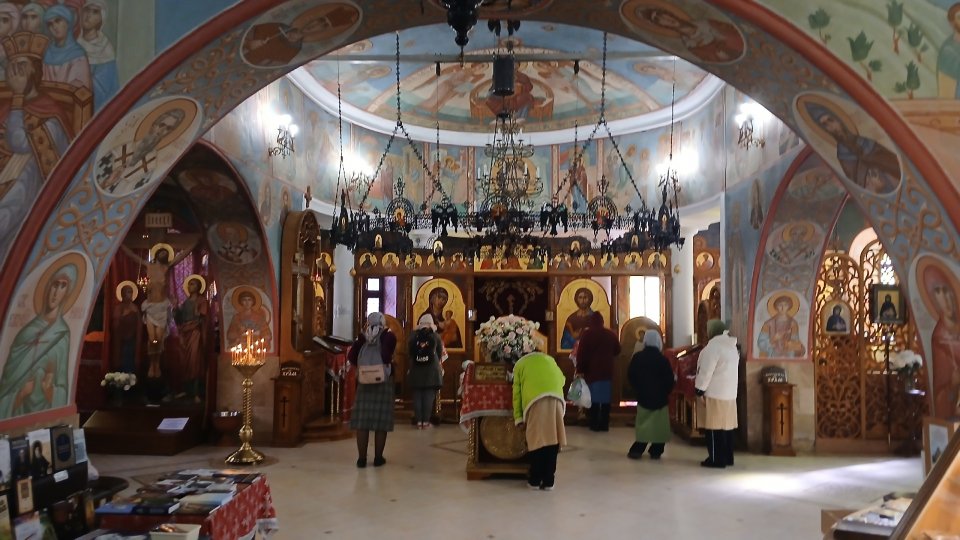 Группа паломников впервые посетила верхний храм Свято-Троицкого собора, поразившись красотой его убранства и размерами. Молитва Святой Троице в соборе завершила паломническую программу в Топловском монастыре.