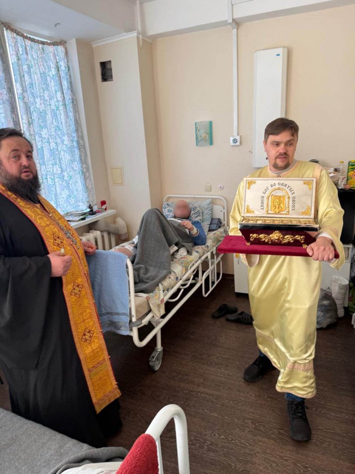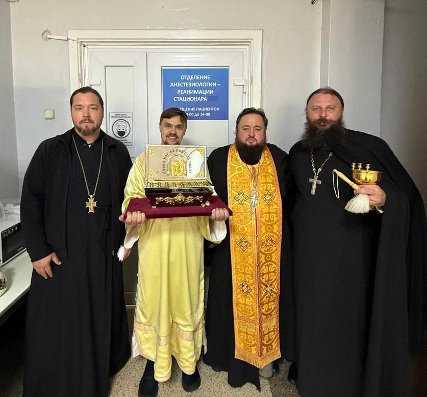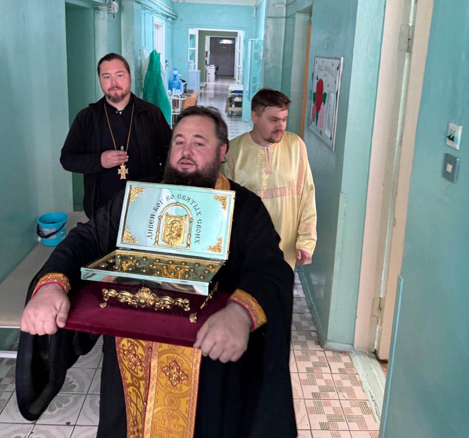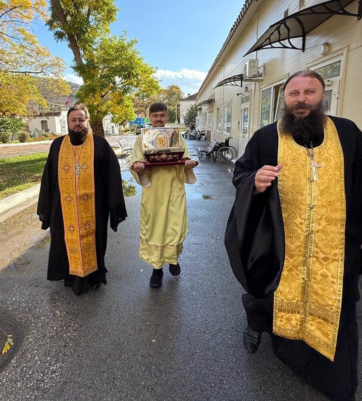 29 октября, по благословению Высокопреосвященнейшего Митрополита Симферопольского и Крымского Тихона, госпитальным духовенством Севастополя были принесены честные мощи святых угодников Божиих в военный госпиталь. Среди священников - благочинный Северного церковного округа, ответственный за госпитальное служение Симферопольской и Крымской епархии, протоиерей Борис Кравец, клирик Центрального благочиния протоиерей Павел Бондар, и старший священник госпиталя иерей Николай Яковлев.