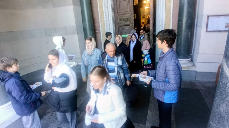 Воскресное богослужение и раздача миссионерских листовок в Свято-Владимирском соборе-усыпальнице адмиралов