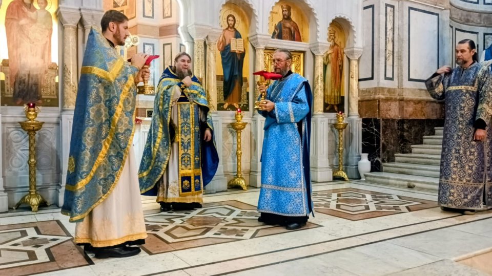 В Свято-Владимирском соборе-усыпальнице адмиралов была совершена праздничная Божественная литургия, которую, в сослужении духовенства собора, возглавил благочинный Центрального церковного округа протоиерей Сергий Халюта.