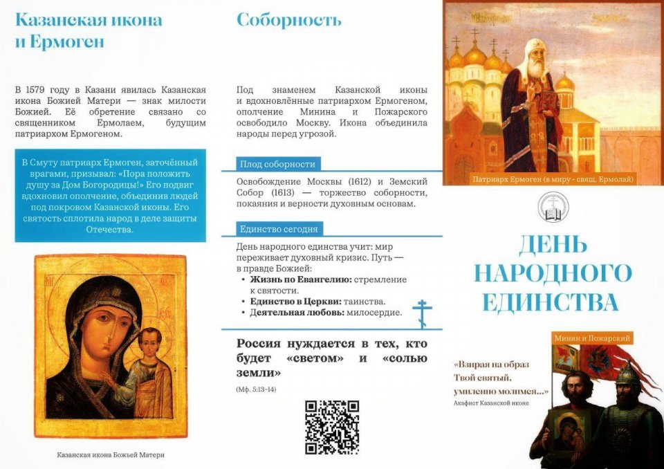 4 ноября, в праздник Казанской иконы Божией Матери и День народного единства, у стен Покровского собора царила особая, праздничная атмосфера. Вместе с отрядом православных следопытов «Покров» мы помогали раздавать праздничные миссионерские буклеты и Евангелие у Покровского собора.