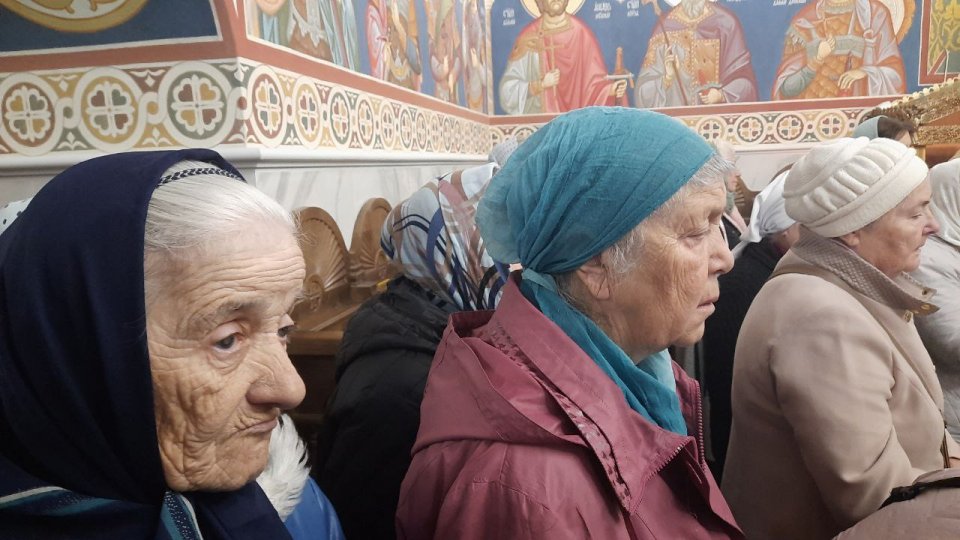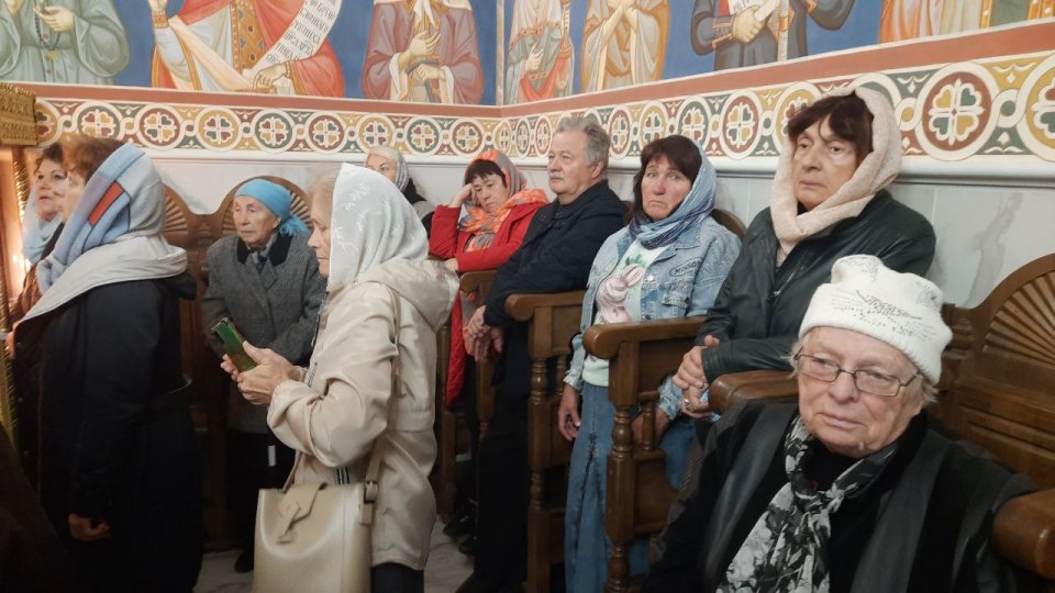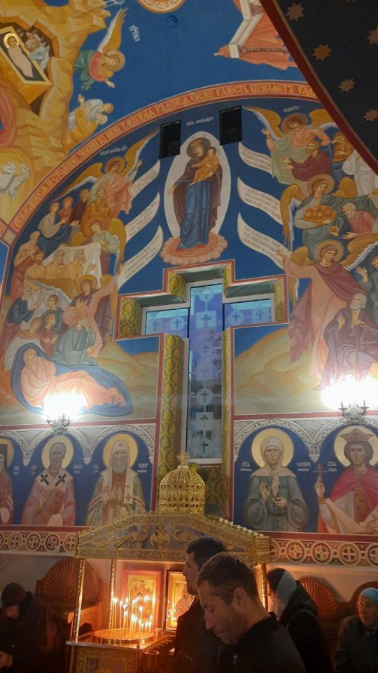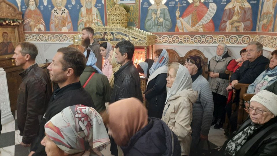 По случаю престольного праздника храм был переполнен верующими, так что многие молились на крыльце и слушали службу через горомкоговорители.
