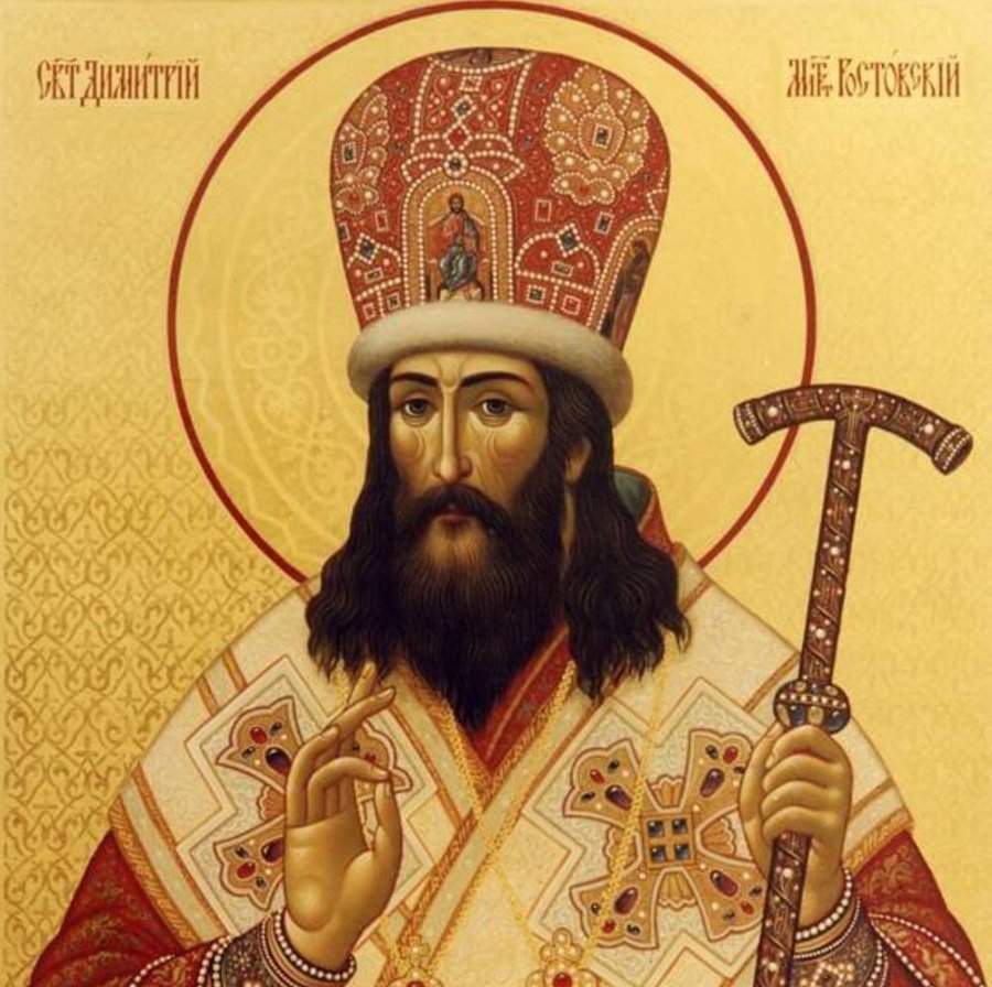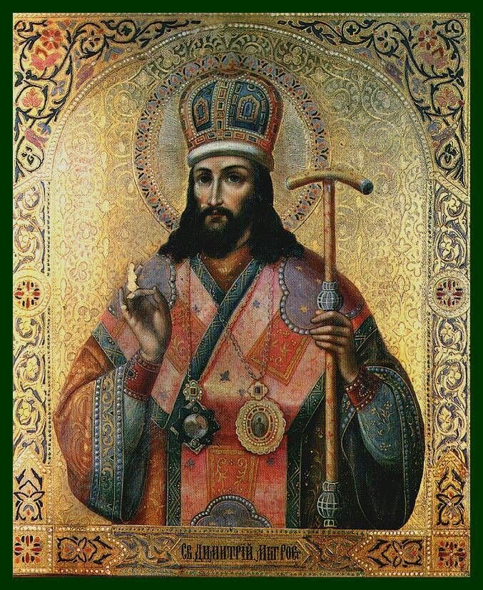 О, всеблаже́нный святи́телю Дими́трие, вели́кий уго́дниче Христо́в, Златоу́сте Росси́йский, услы́ши нас гре́шных, моля́щихся тебе́, и принеси́ моли́тву на́шу к Ми́лостивому и Человеколю́бцу Бо́гу, Ему́же ты ны́не в ра́дости святы́х и с ли́ки А́нгел предстои́ши!