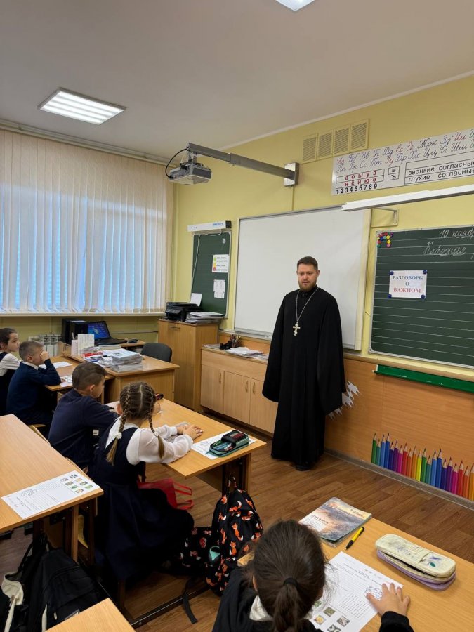Священник Центрального благочиния, иерей Серафим Ломакин, провел беседу в рамках «Разговора о важном» в 3-А классе начальной школы 7-й гимназии имени В.И. Великого. Классным руководителем была предложена тема: «Научись ценить и уважать чужой труд».