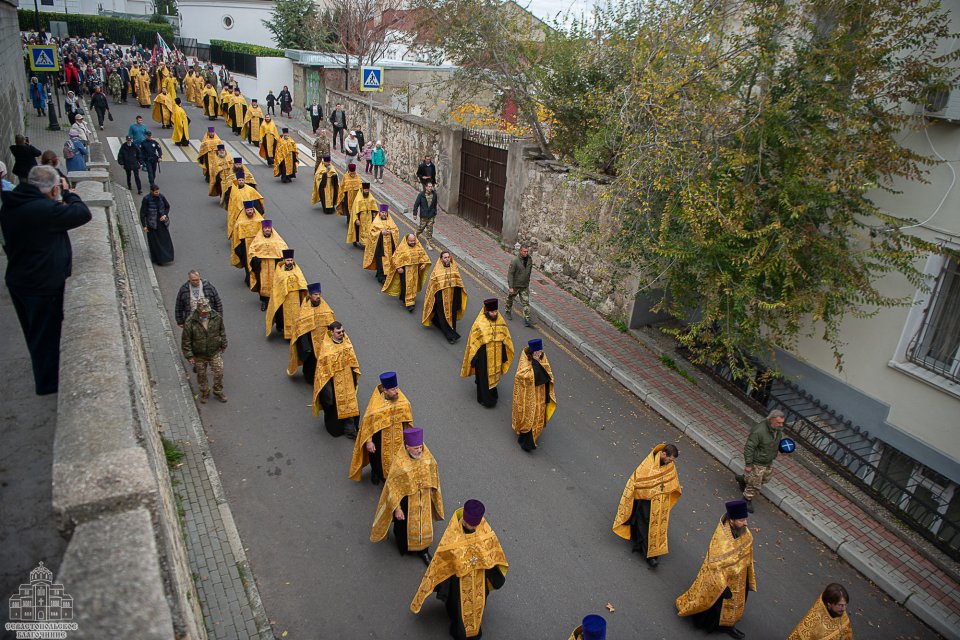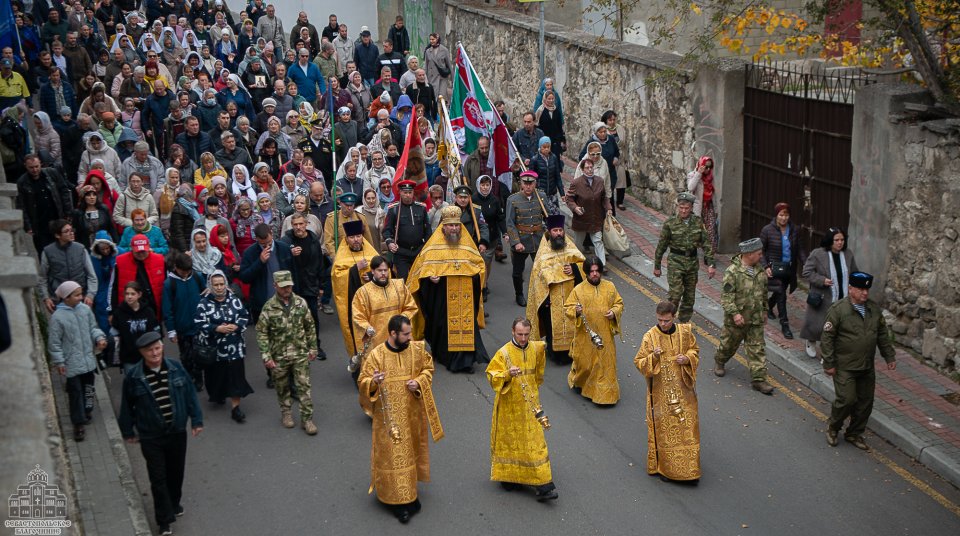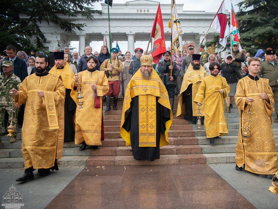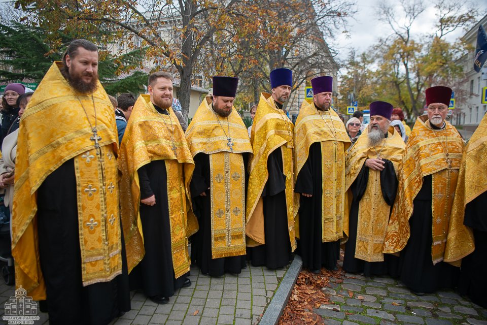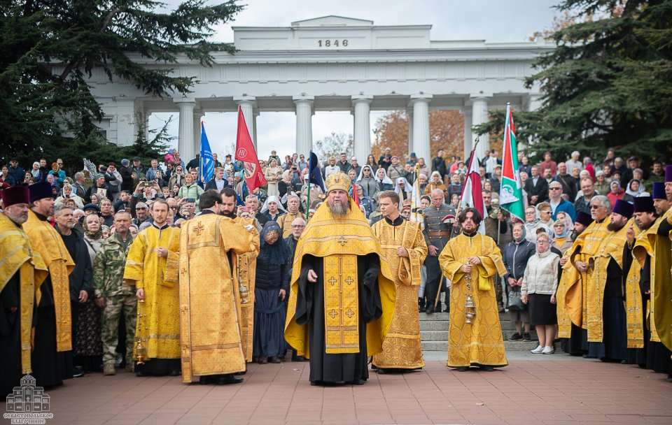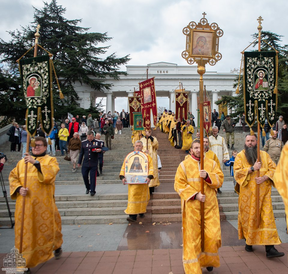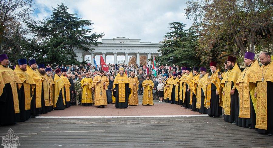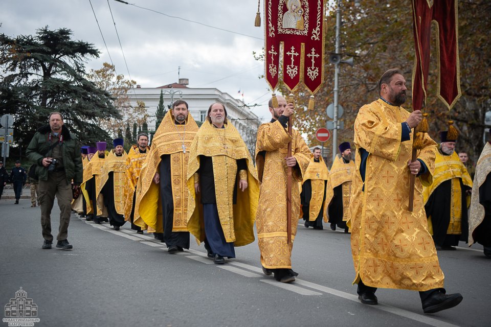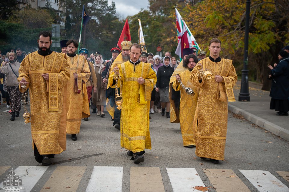 16 ноября, в воскресенье, крестный ход духовенства, казачества и жителей города вновь прошел по улицам Севастополя, чтобы напомнить городу о трагических событиях не простого Русского Исхода, а великого русского разделения – на «своих» и «чужих». Во главе Крестного хода шли благочинный Центрального церковного округа протоиерей Сергий Халюта, благочинный Северного церковного округа протоиерей Борис Кравец, благочинный Херсонесского церковного округа протоиерей Стефан Сломчинский и духовенство Севастополя.