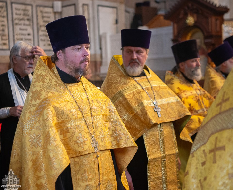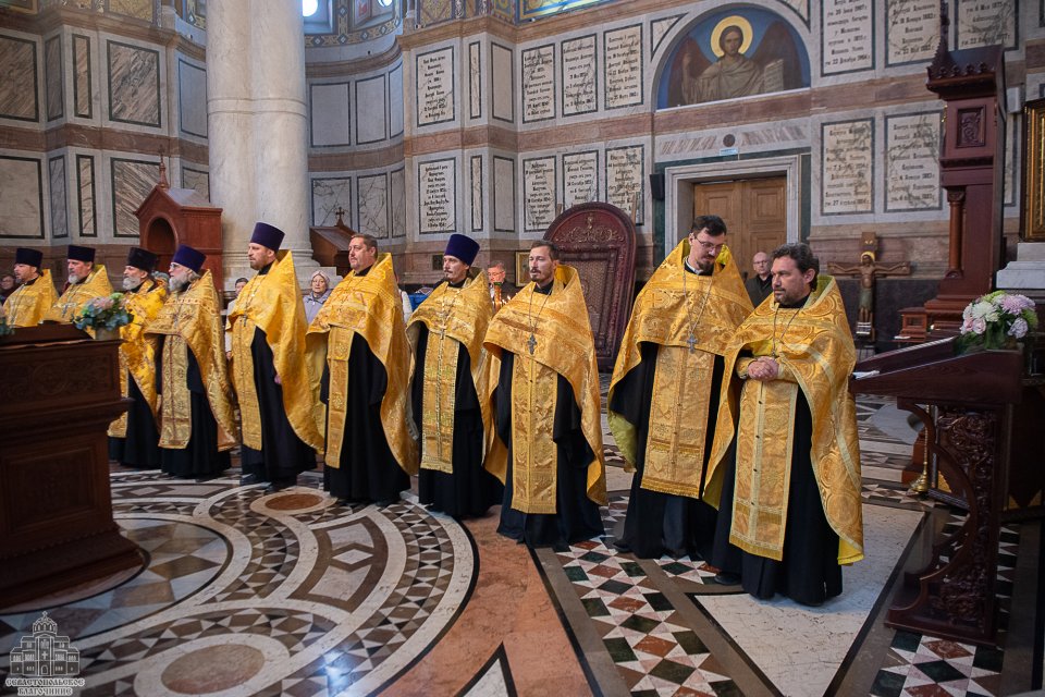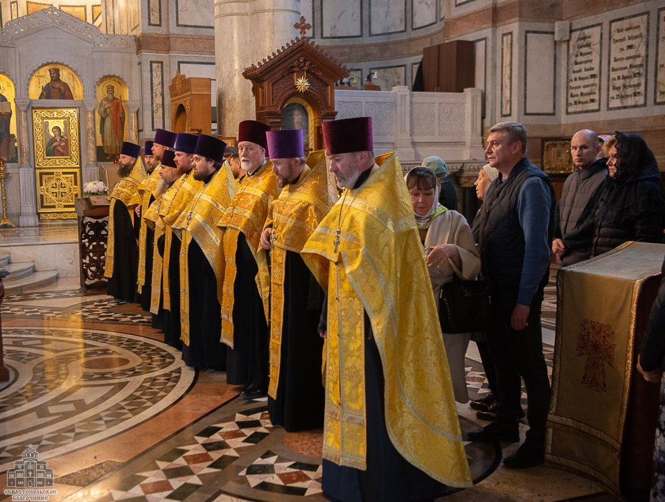 Богослужение возглавил благочинный Центрального церковного округа протоиерей Сергий Халюта в сослужении благочинного Херсонесского благочиния протоиерея Стефана Сломчинского и благочинного Северного церковного округа протоиерея Бориса Кравца, а также духовенства Севастополя.