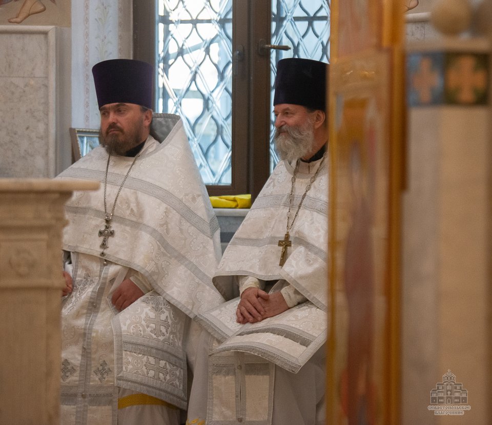 Праздничную Божественную литургию возглавил благочинный Центрального церковного округа Севастополя протоиерей Сергий Халюта в сослужении настоятеля храма протоиерея Игоря Тышкевича, наместника монастыря святых Косьмы и Дамиана архимандрита Илариона, духовенства Севастополя.