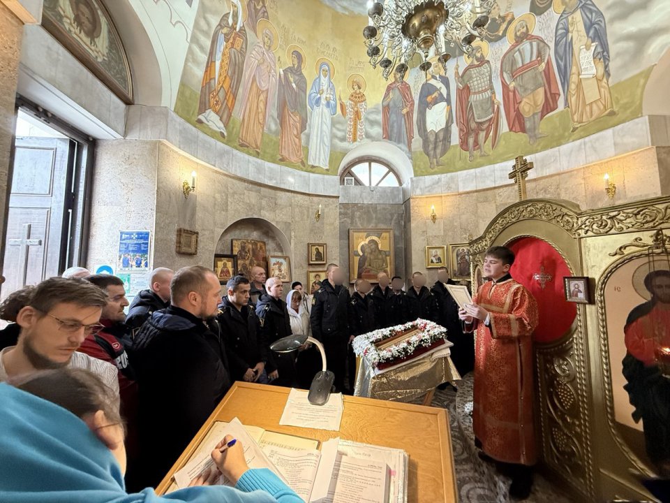 Воскресным утром, за Божественной литургией, молились не только прихожане, но и курсанты ЧВВМУ им. П. С. Нахимова. Моряки-черноморцы – частые и долгожданные гости храма, которым здесь всегда рады. Почти все пришедшие в этот день вознести молитвы святому великомученику Георгию приступили к Таинству исповеди исподобились причаститься Святых Христовых Таин.
