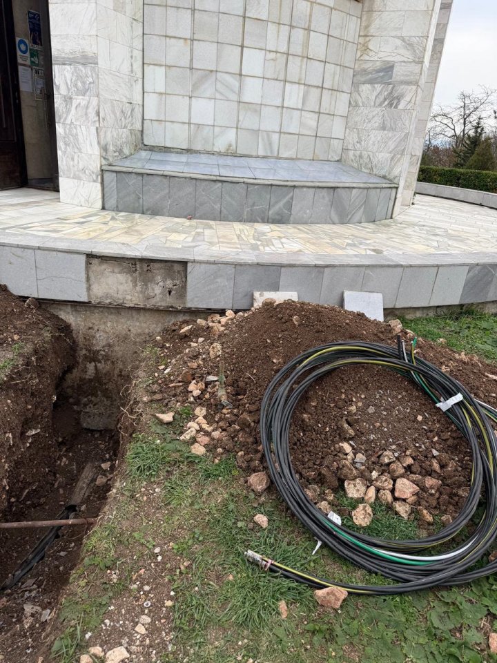 Завершилось богослужение Крестным ходом, во время которого были освящены обновлённые стены трапезной храма, после завершения ремонтных работ по восстановлению разорванного электрического кабеля.