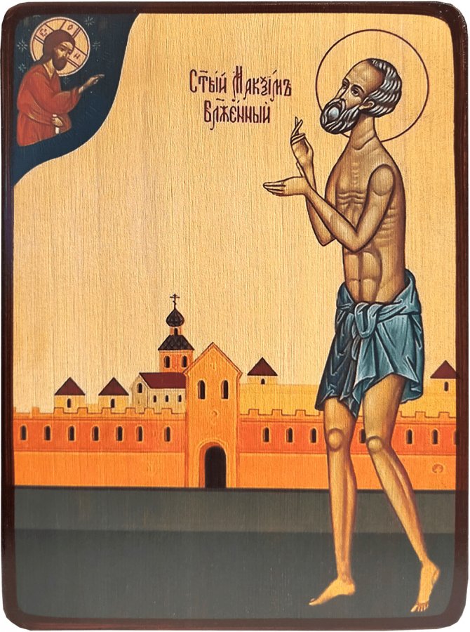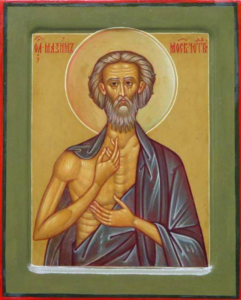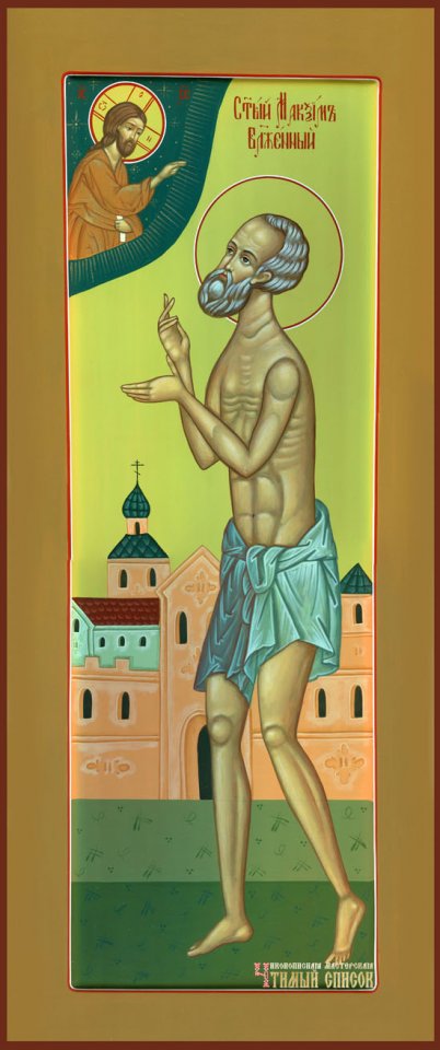 Блаженный Максим, Христа ради юродивый, жил в Москве. О его родителях, времени и месте рождения ничего не известно. Святой Максим избрал один из самых трудных и тернистых путей ко спасению, добровольно, Христа ради приняв на себя личину юродивого. Летом и зимой Максим ходил почти нагим, перенося с молитвой и зной, и холод. «Хоть люта зима, но сладок рай», – говорил он, поучая всех терпению и перенесению житейских невзгод.