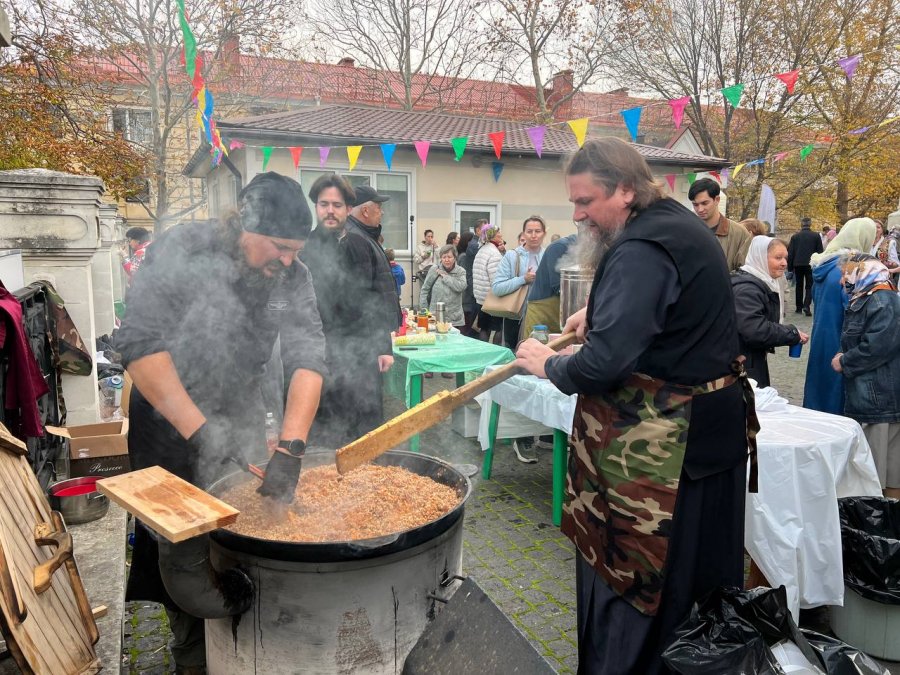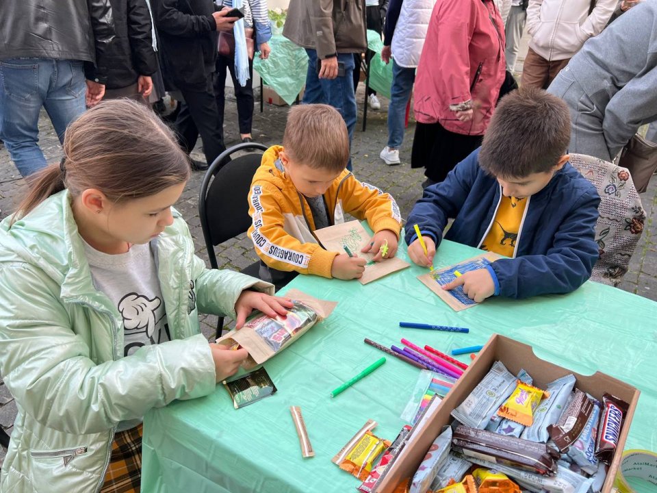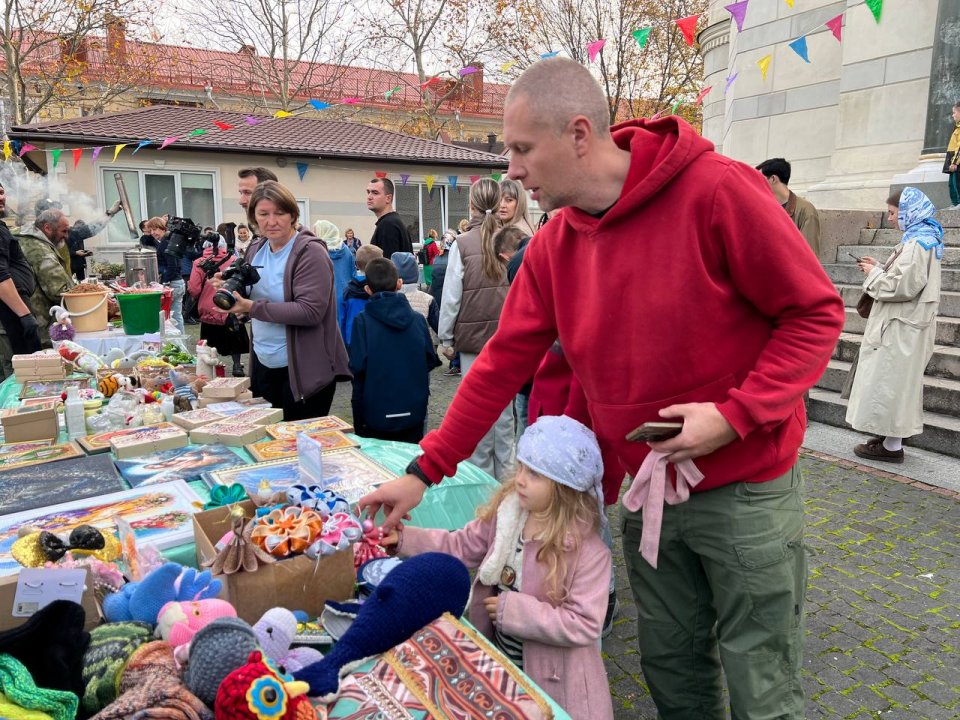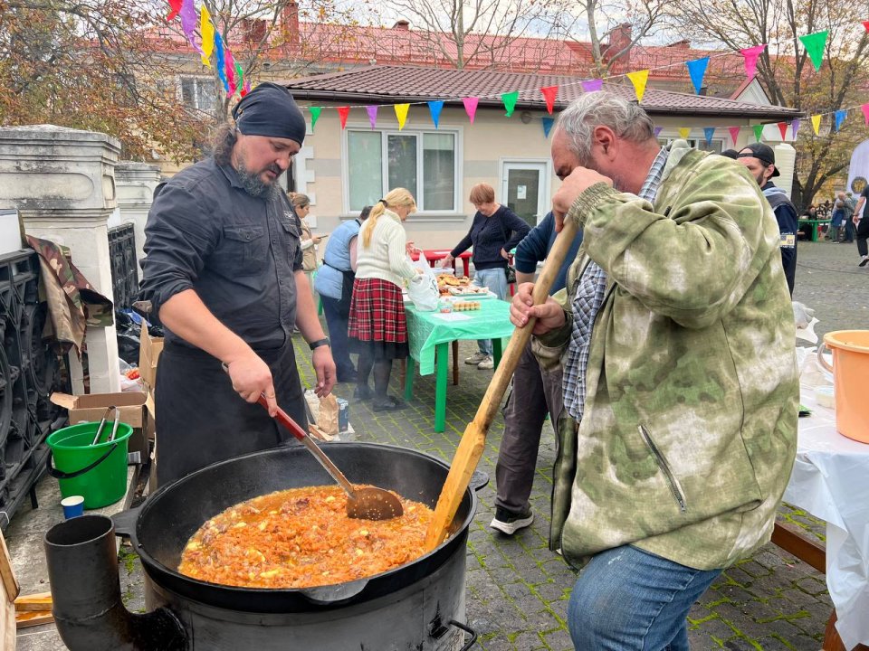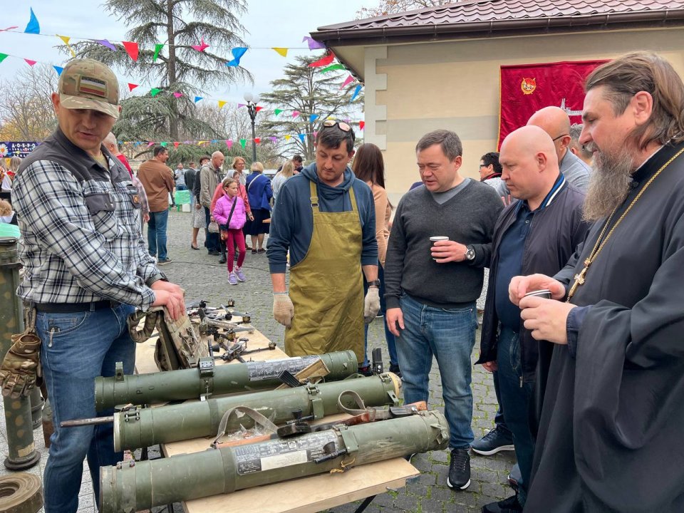 Традиционно на ярмарках всех кто пришел угощают кашей от "батюшки", которую ждут уже не только прихожане, но и те, кто приходит на аромат вкусного блюда. Для людей с концертной программой выстпил творческий коллектив "Кузня", который радовал гостей добрыми и патриотическими песнями. Провели выставку трофейного оружия, которое привезли с фронта. И, конечно, устроили мастер-классы для детей: ребята делали из бумаги голубей мира, открытки с пожеланиями нашим воинам, делали сувениры из мозаики и собирали наборы для сбросов для наших бойцов.