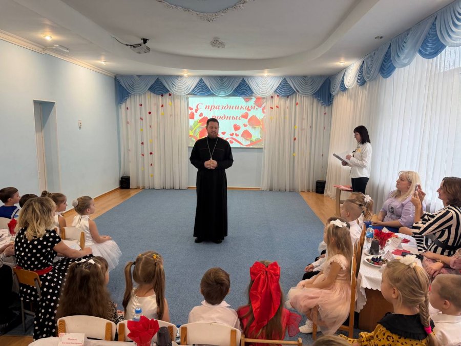 Священник Центрального благочиния, настоятель храма преподобного Виталия, иерей Серафим Ломакин, принял участие в торжественном праздновании Дня матери в детском саду №28.