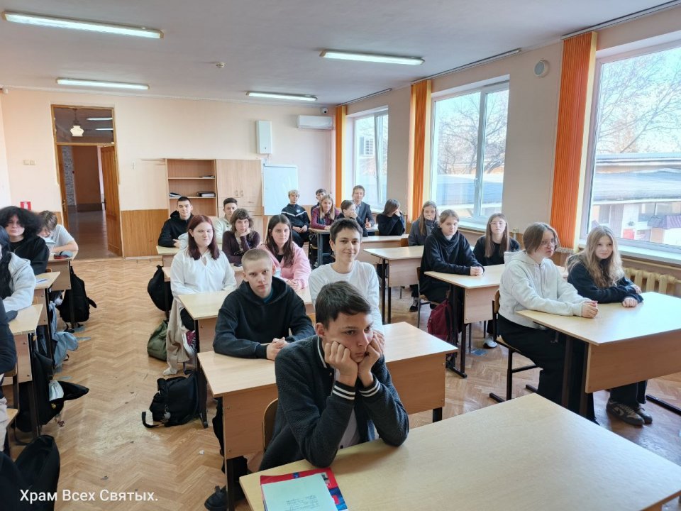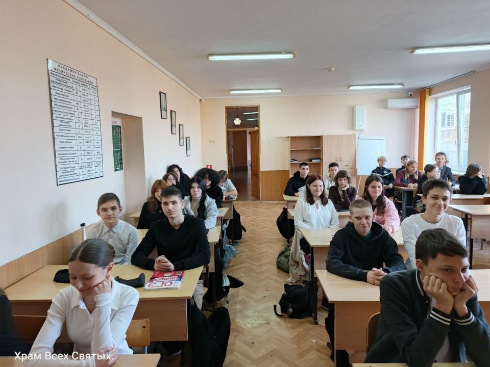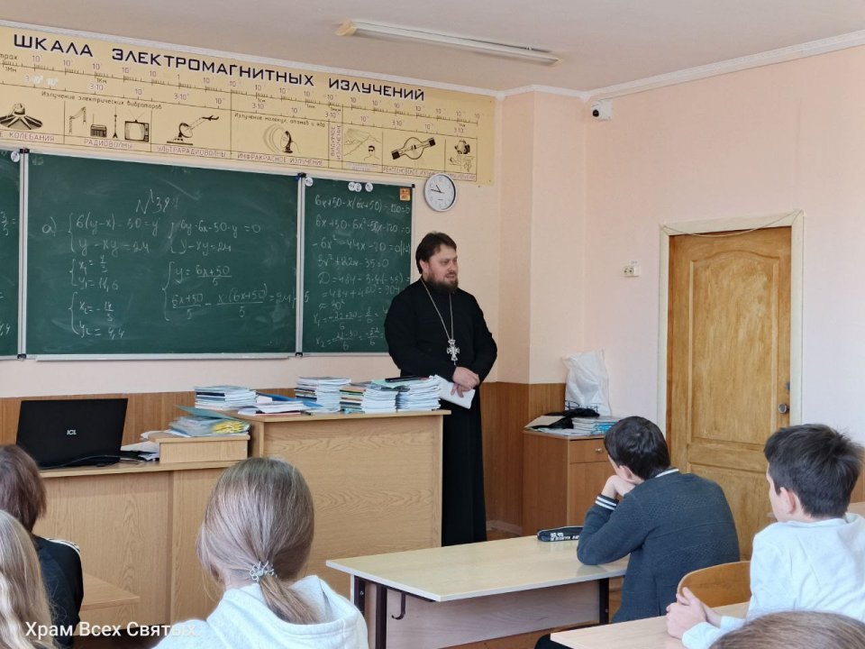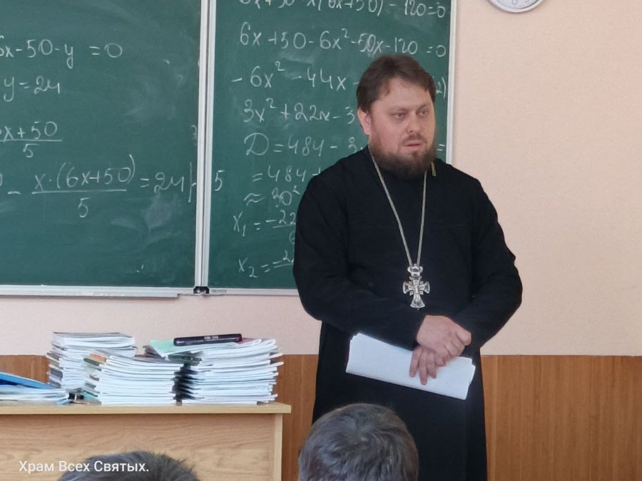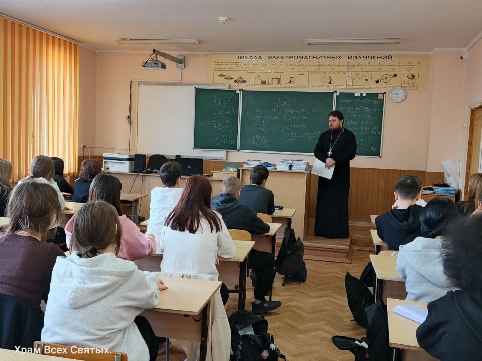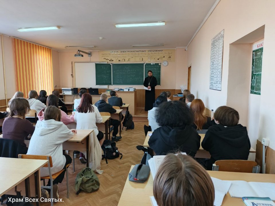 Накануне праздника «День матери» клирик храма Всех Святых протоиерей Сергий Климачев посетил среднюю образовательную школу №45. Был проведён урок для 9-х классов, посвященный теме влюбленности и настоящей любви в семье.