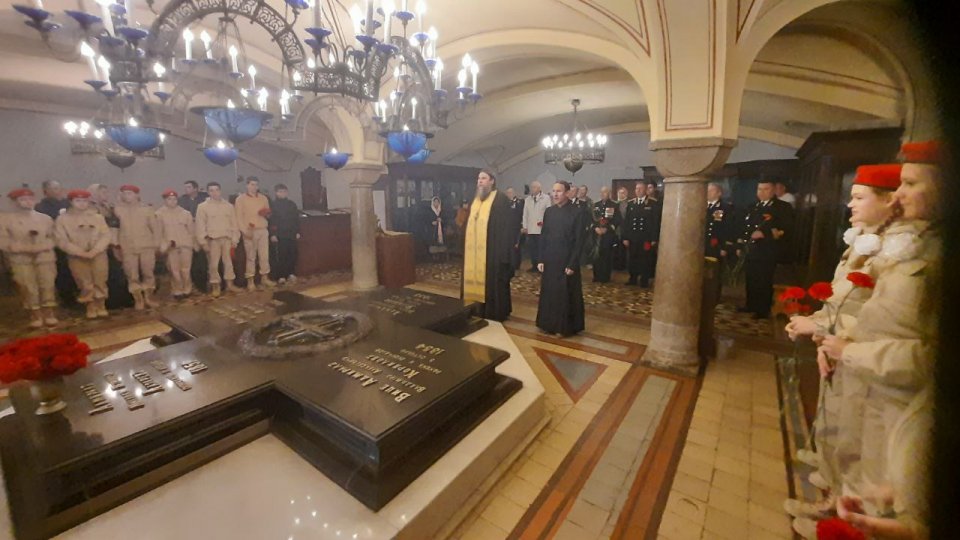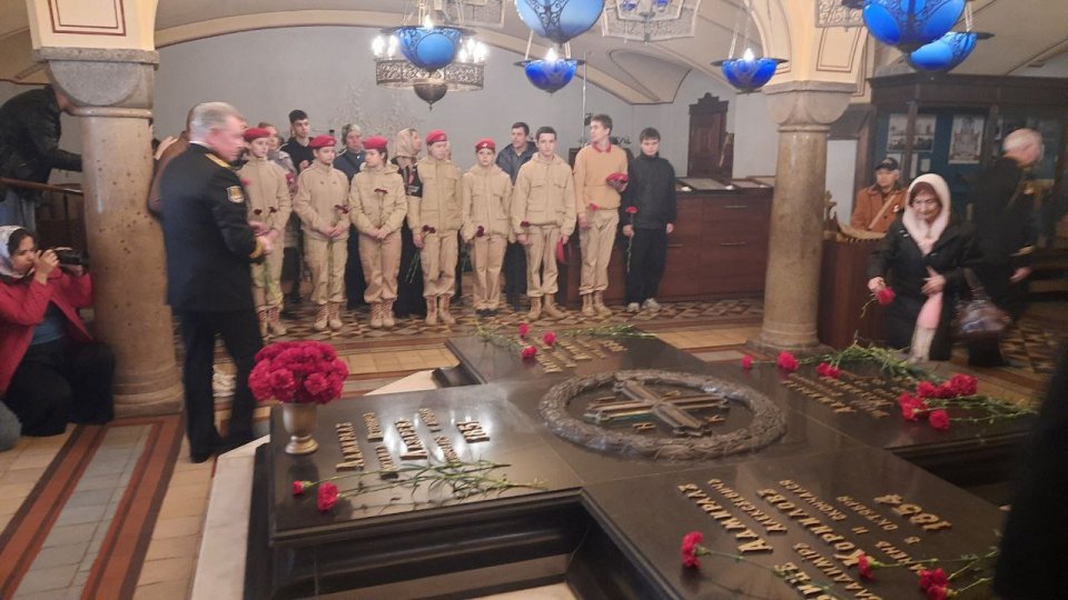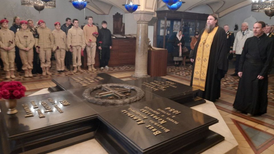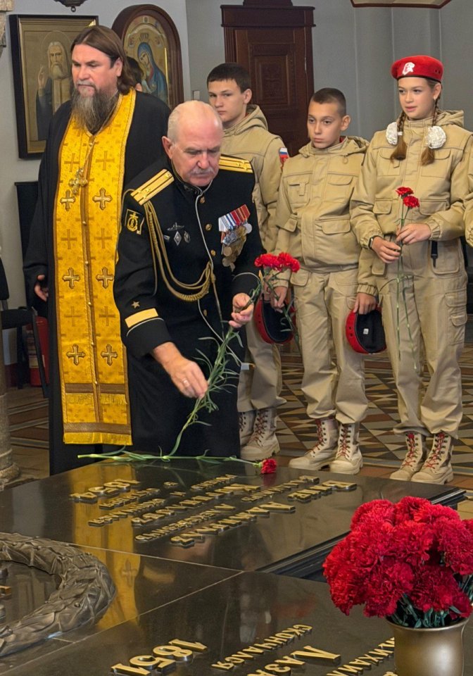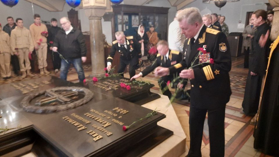 За богослужением молились офицеры Черноморского флота, представители музея обороны и освобождения Севастополя, юнармейцы. По окончании молебна все спустились в нижний храм собора, крипту, где отец Сергий Халюта пропел вечную память Павлу Степановичу Нахимову. Затем все присутствующие возложили цветы к месту упокоения великих русских адмиралов.