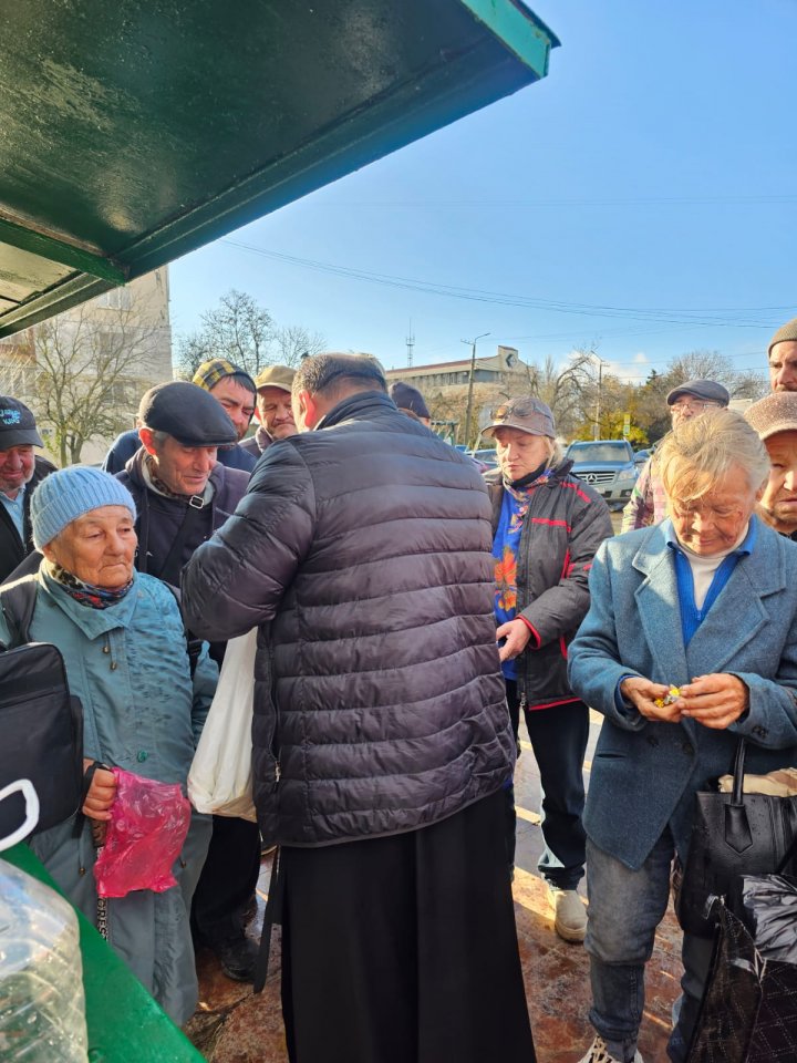 К малоимущим к моменту раздачи обедов снова и снова приезжает руководитель отдела социального служения Центрального благочиния, настоятель храма святителя Спиридона Тримифунтского, иерей Игорь Крылов. 1 декабря отец Игорь снова был здесь, отслужил молебен, окропил всех святой водой, сказал проповедь о воскресном Евангелии, побеседовал с людьми, ответил на их вопросы.