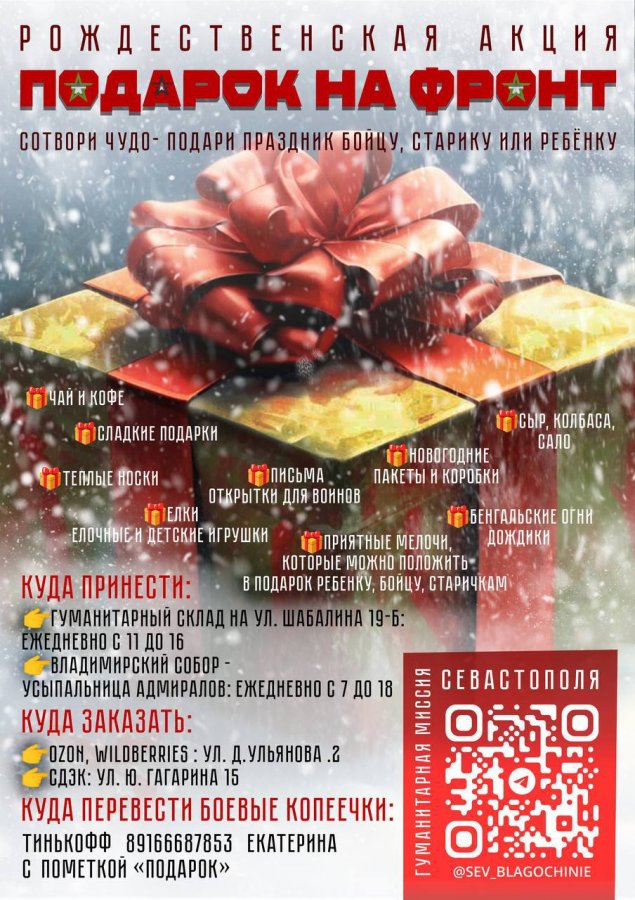 Весь декабрь мы принимаем все, что может пригодится для подарков детям, старикам, бойцам: