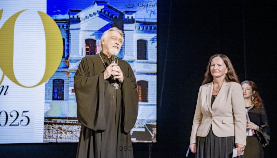 По благословению благочинного Центрального церковного округа протоиерея Сергия Халюта коллектив школы с юбилеем поздравил почетный настоятель Свято-Владимирского собора-усыпальницы адмиралов протоиерей Алексий Тупиков.