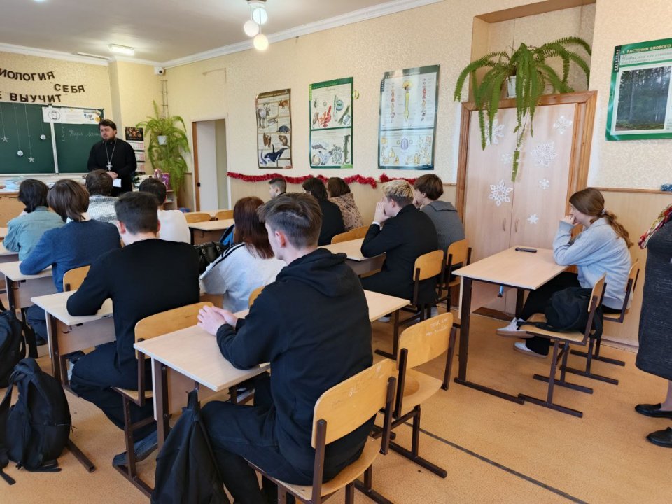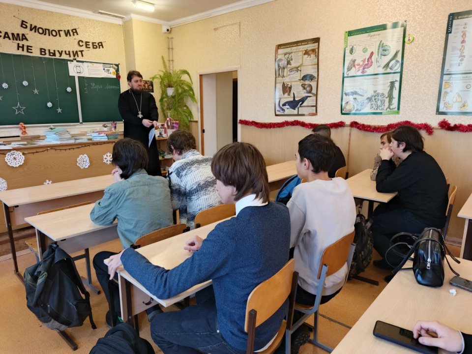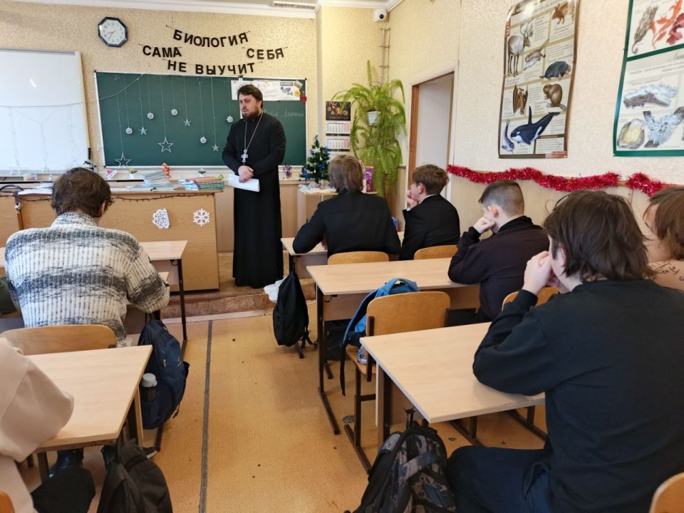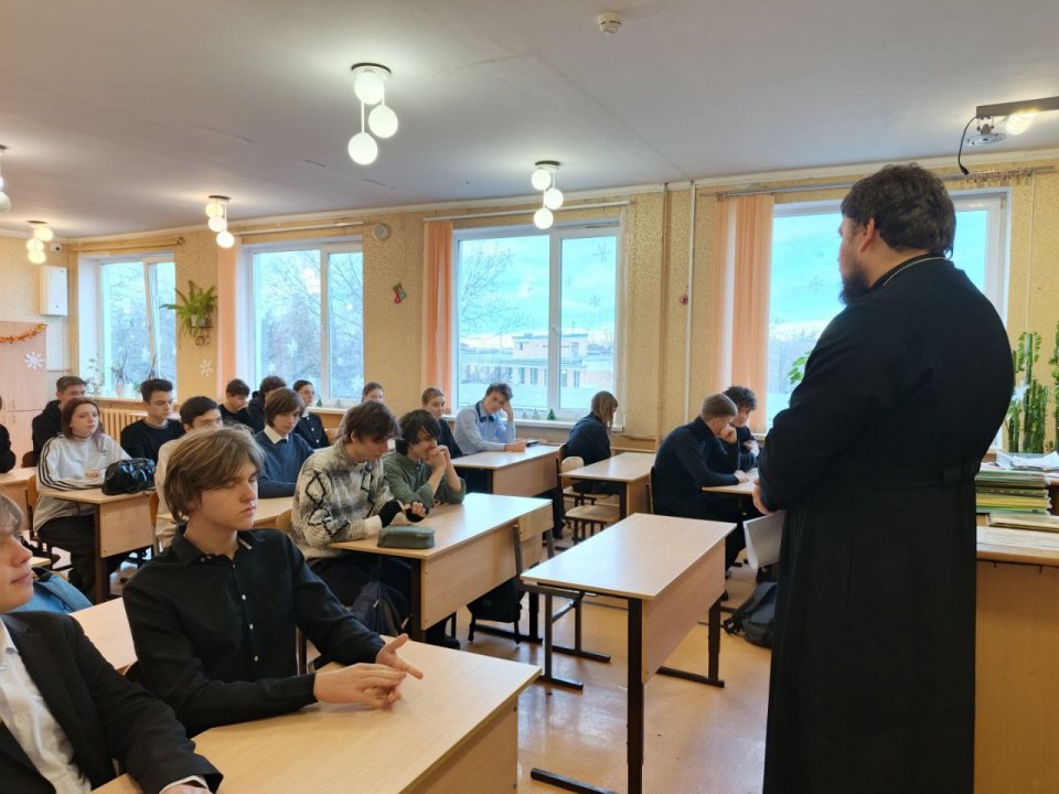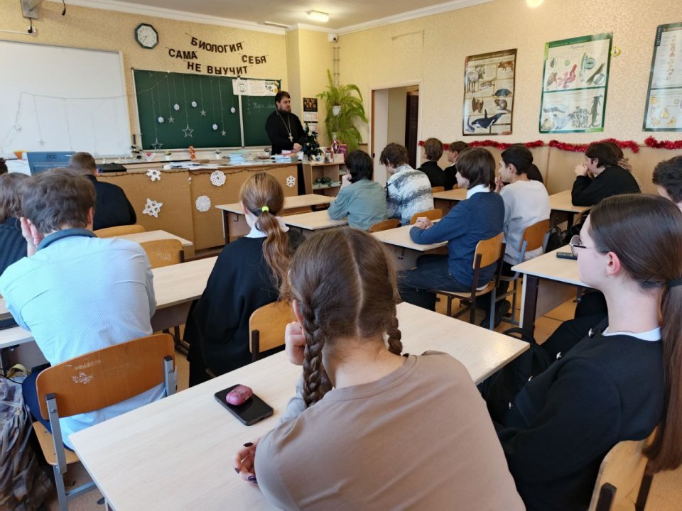 Клирик храма Всех Святых провел беседу с десятиклассниками школы №45