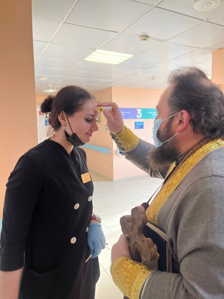 Клирик храма свт. Луки Крымского поздравил с праздником свт. Николая Чудотворца пациентов и персонал 1-й горбольницы