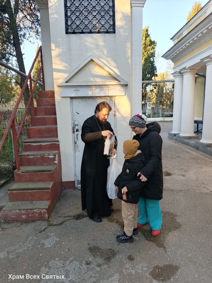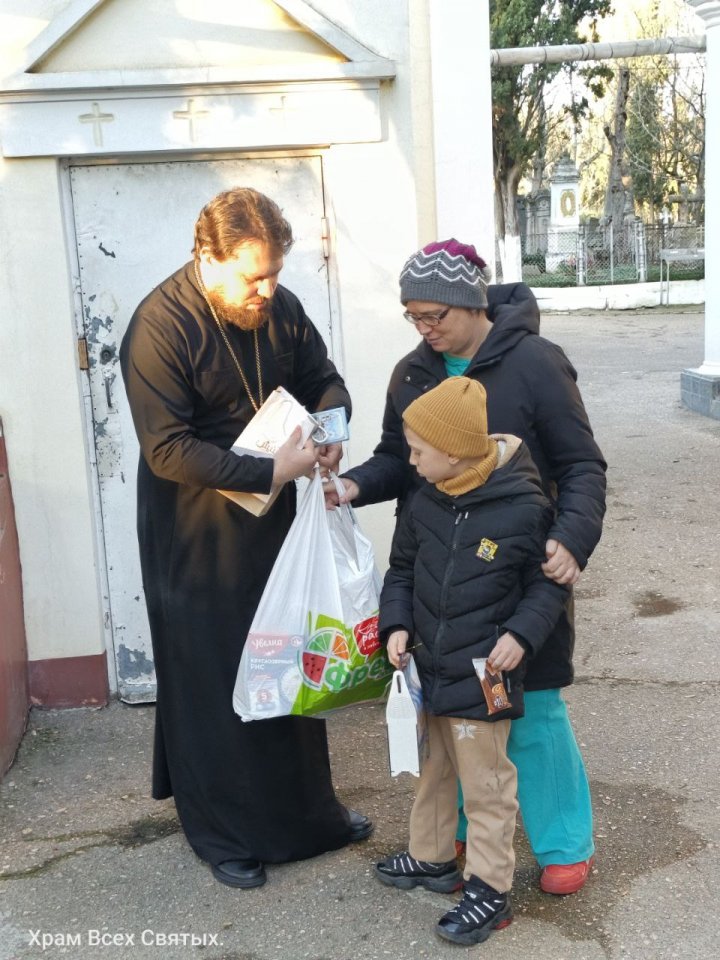 В праздник святителя и Чудотворца Николая община храма Всех Святых подготовила и передала продуктовые наборы и подарки тем, кто нуждается в помощи и поддержке. Так же при храме были испечены кексы с изюмом, более 200 штук, для поздравления и передачи воинам.