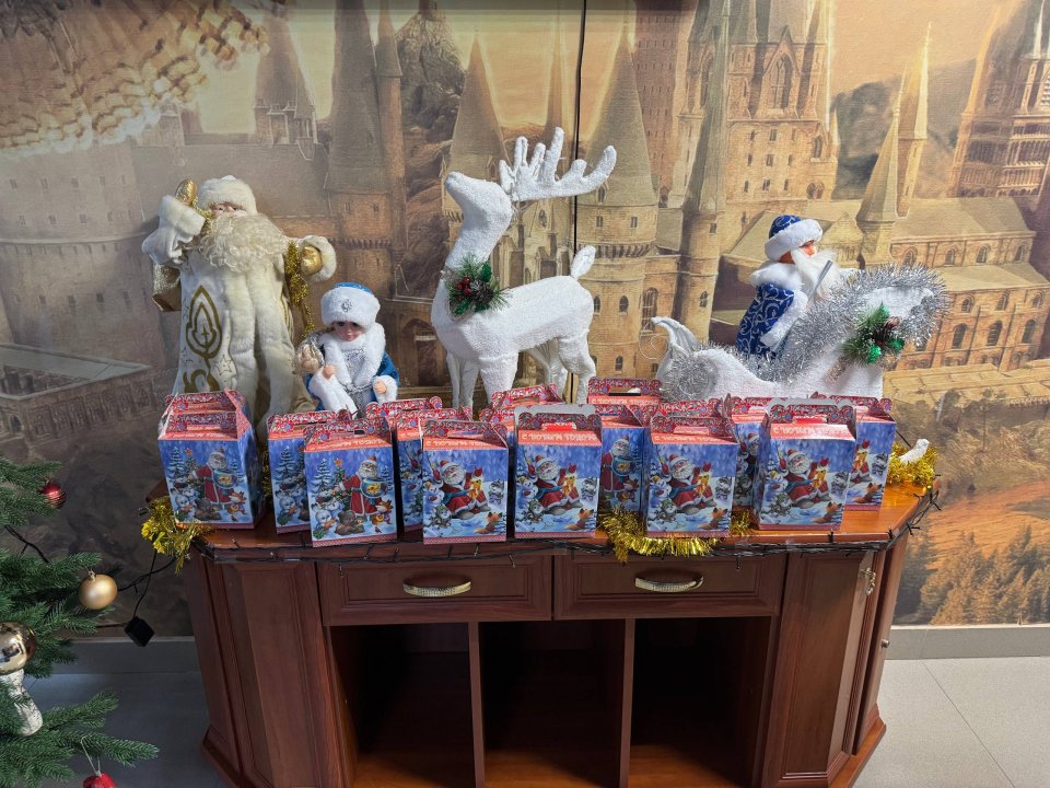 Конечно, гости приехали с подарками – прекрасные сладкие наборы в нарядной упаковке стали приятным сюрпризом для ребят.