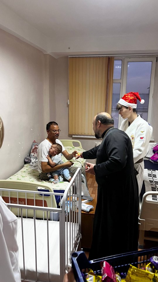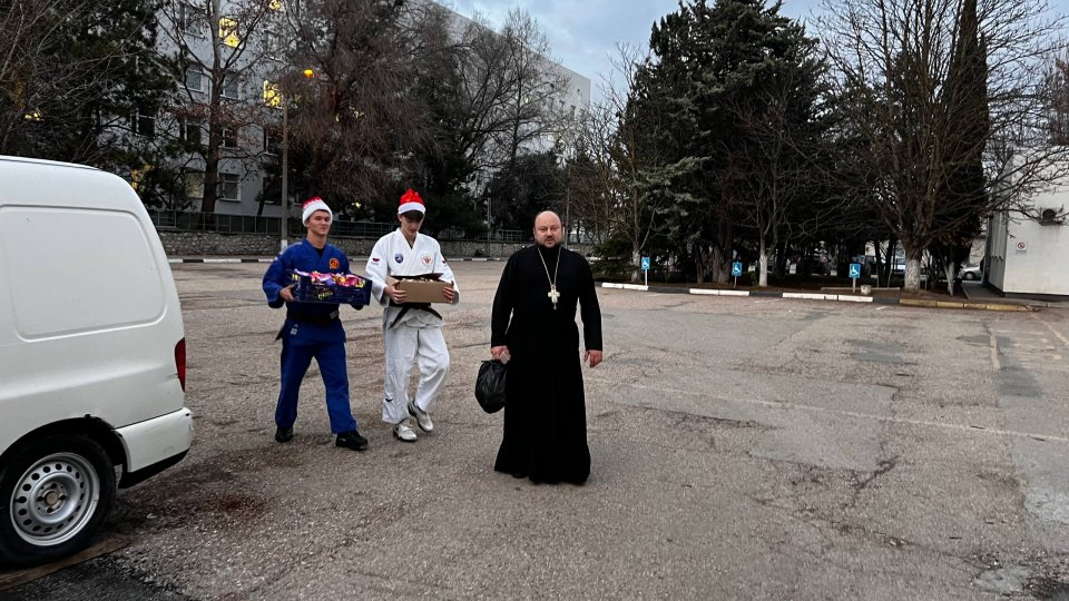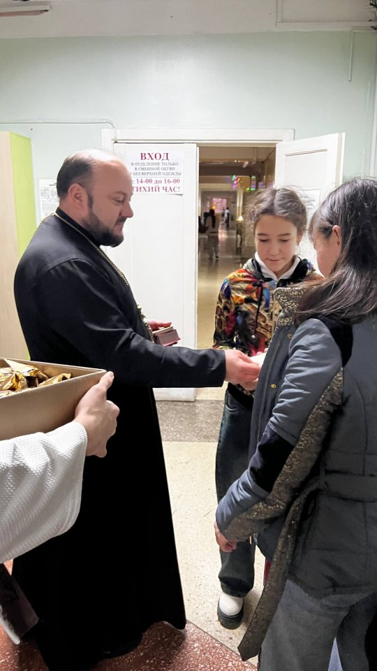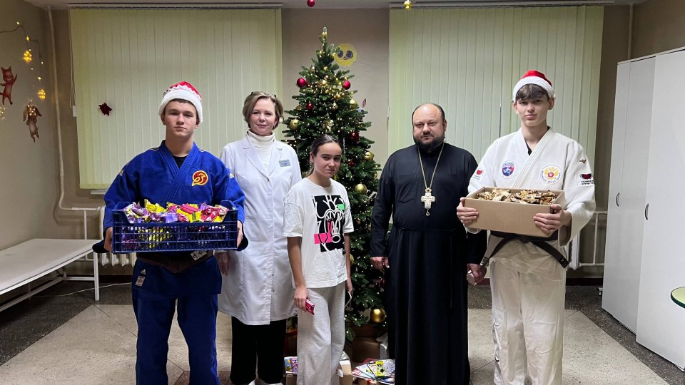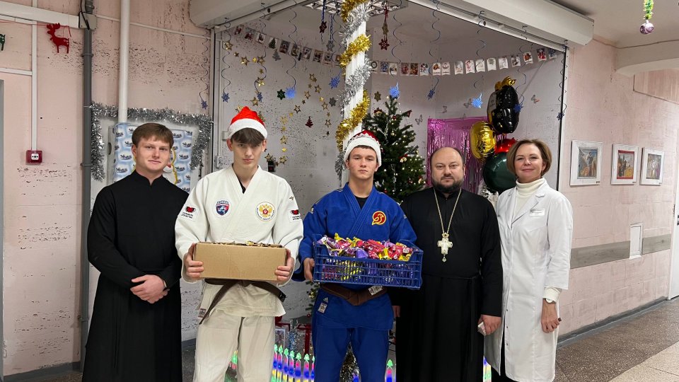 19 декабря, в день памяти святителя Николая Чудотворца, настоятель храма святителя Спиридона Тримифунтского иерей Крылов, в сопровождении двух крепких спортсменов-самбистов из спортивного клуба «Соловьи» и представителей молодежного объединения прихода, посетили маленьких пациентов Детского больничного комплекса.