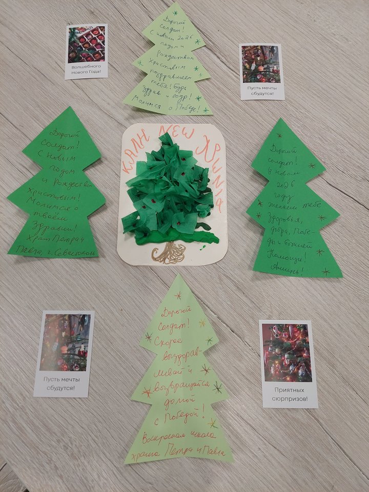 Накануне последнего дня уходящего года ученики нашей воскресной школы успели передать открытки и письма раненым солдатам в госпиталь.