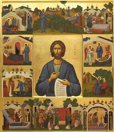 И я́коже пре́жде о́вым у́бо, от о́чныя зе́льныя боле́зни ни ма́ло зре́ти могу́щим исцеле́ние оче́с, о́вым же близ сме́рти бы́вшим от лю́тых неду́гов врачева́ние, и ины́м ина́я мно́гая пресла́вная благодея́ния дарова́л еси́: си́це изба́ви и нас от неду́гов душе́вных и теле́сных и от вся́кия ско́рби и печа́ли, и вся блага́я к настоя́щему житию́ на́шему и к ве́чному спасе́нию благопотре́бная нам от Го́спода испроси́, да та́ко твои́м предста́тельством и моли́твами стяжа́вше вся нам поле́зная, а́ще и недосто́йнии, благода́рне восхваля́юще тя, просла́вим Бо́га, ди́внаго во святы́х Свои́х, Отца́, и Сы́на, и Свята́го Ду́ха, ны́не и при́сно и во ве́ки веко́в. Ами́нь.