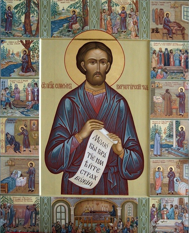 Праведный Симеон Верхотурский родился в начале XVII века в европейской части России в семье благочестивых дворян. Повинуясь Божественному водительству, он оставил почести и земное богатство и удалился за Урал. В Сибири праведный Симеон жил как простой странник, скрывая свое происхождение. Чаще всего он посещал село Меркушинское, находившееся недалеко от города Верхотурья, где молился в деревянной церкви.