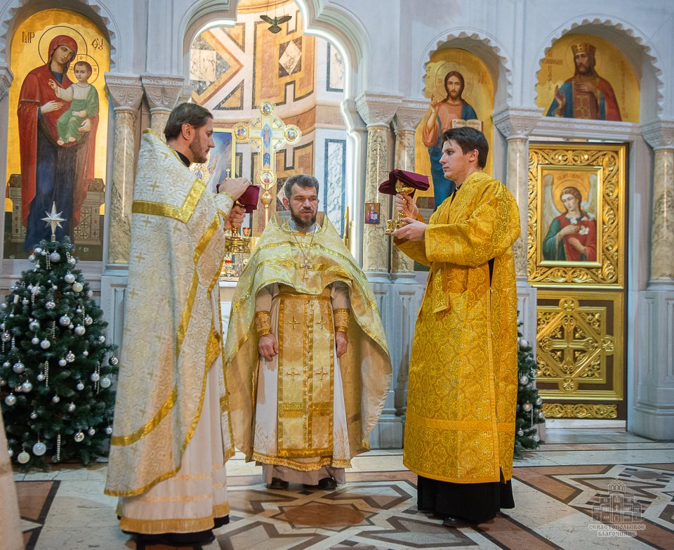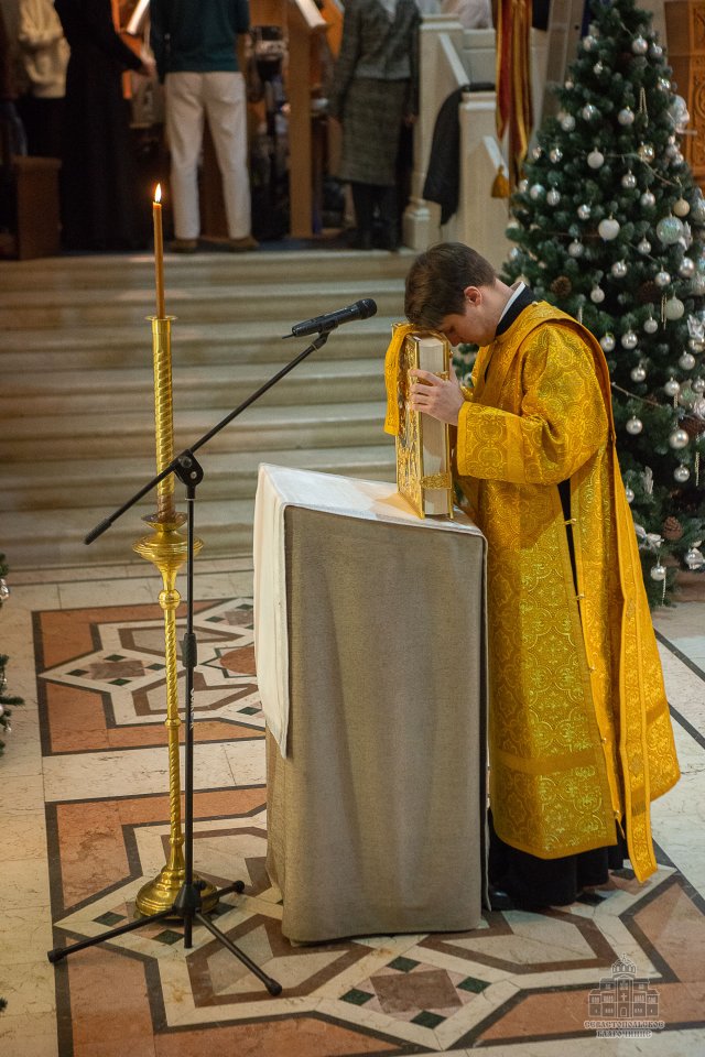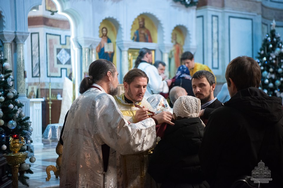 По окончании богослужения отец Сергий зачитал Рождественское послание Патриарха Московского и всея Руси Кирилла и поздравил прихожан со светлым праздником Рождества Сына Божия, Господа Иисуса Христа: «Дорогие братья и сестры, сердечно поздравляю вас с Рождеством Господа нашего Иисуса Христа. Мы с вами всегда должны спрашивать себя, что же мы можем принести к яслям рожденного Богомладенца? Богу нужно только наше сердце, наполненное любовью, милосердием, сердце, которое побуждает тебя к смирению и кротости, к служению ближнему своему, бескорыстному и милосердному. В этом и заключается наше спасение, для этого Господь воплотился в мир, для того, чтобы искоренить грех, для того, чтобы нас спасти».