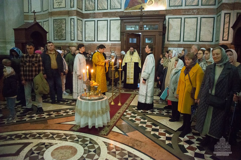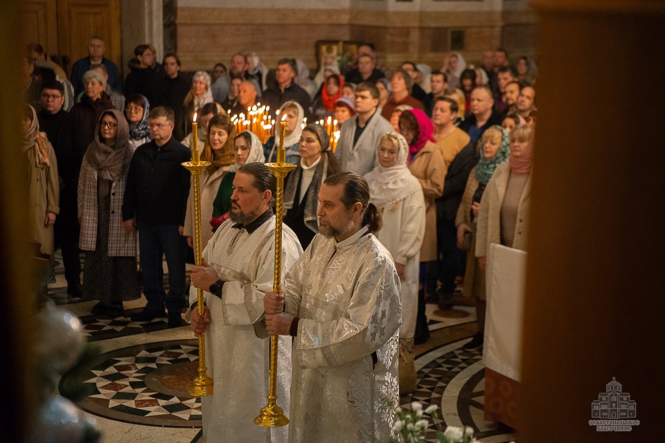 Во Владимирском соборе-усыпальнице адмиралов была совершена ночная Божественная литургия. Праздничное богослужение возглавил благочинный Центрального церковного округа протоиерей Сергий Халюта в сослужении духовенства собора.