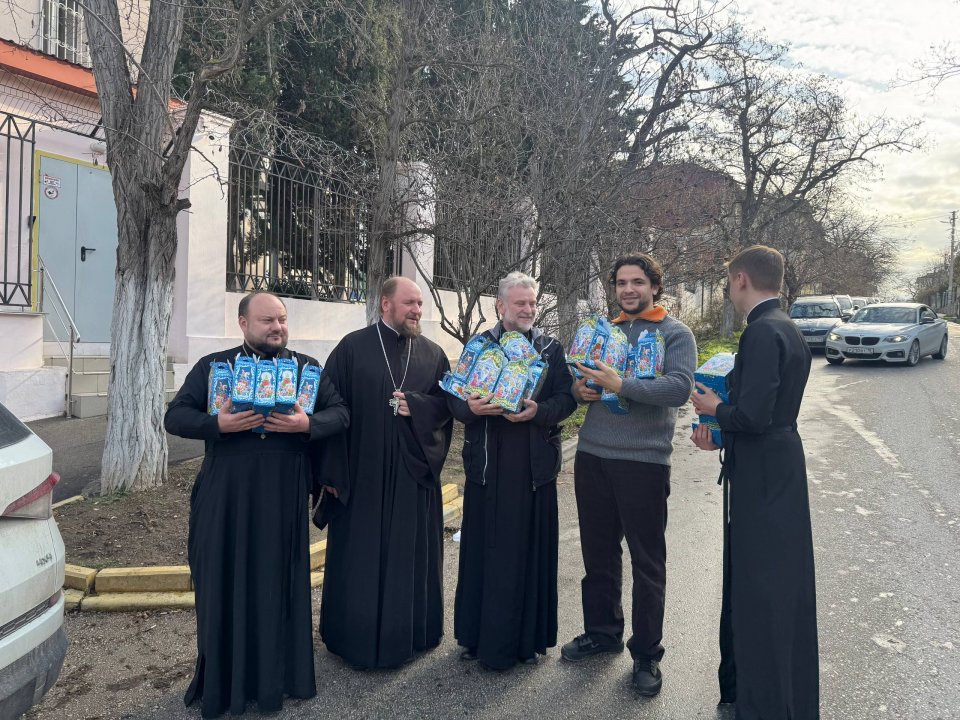 Стало доброй традицией для священнослужителей благочиний г. Севастополя на большие православные праздники поздравлять детей социальных учреждений города. 7 января клирики Херсонесского и Центрального благочиний, протоиерей Виталий Капелюшко, протоиерей Василий Бай и иерей Игорь Крылов посетили своих давних друзей из ГКУ «Центр помощи детям, оставшимся без попечения родителей, «Наш дом».