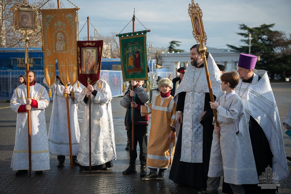 В этот день, славя Богомладенца Христа и Пресвятую Богородицу, с хоругвями и иконами, под праздничные песнопения, вместе с духовенством Севастополя, прошли жители и гости города-героя. Всего в крестном ходе приняли участие несколько сотен человек.