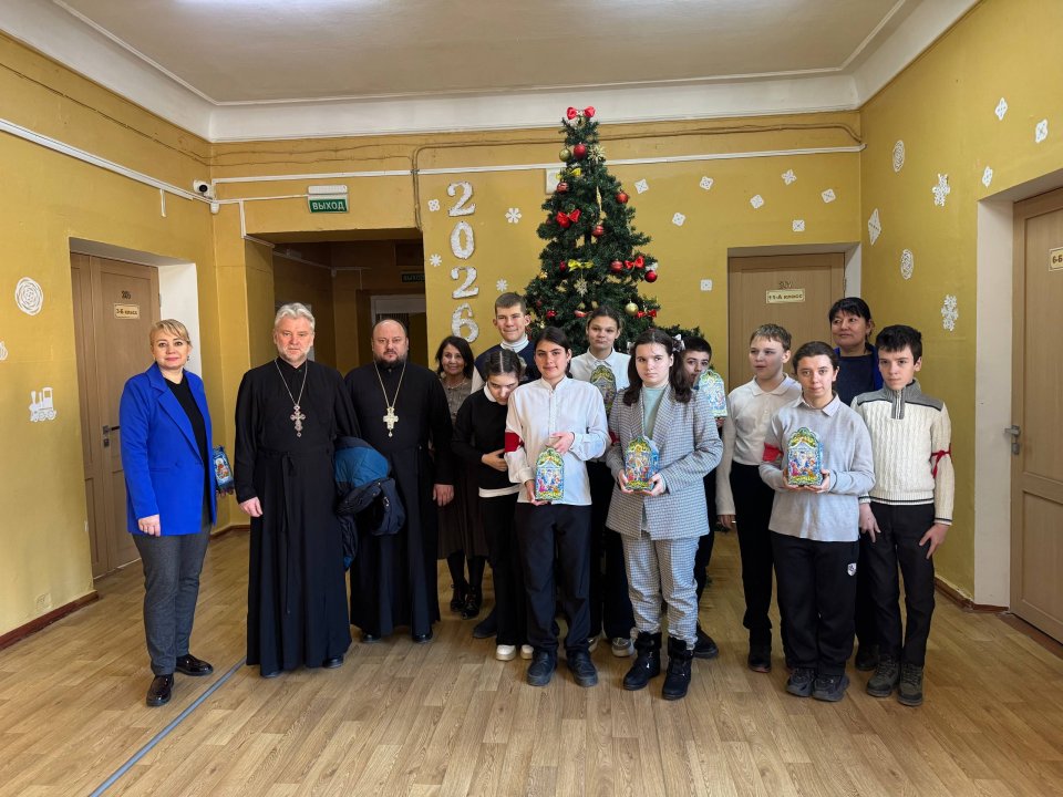 13 января клирики Херсонесского и Центрального благочиний, протоиерей Виталий Капелюшко, протоиерей Василий Бай и иерей Игорь Крылов приехали в гости к своим давним друзьям – воспитанникам севастопольской школы-интерната №1, что на ул. Попова. Батюшки поздравили детей и педагогов с Рождеством Христовым, рассказали об этом всемирном событии и его значении для человечества. А какой праздник без подарка? Детям и их старшим наставникам были вручены новогодние подарки от храмов г. Севастополя.