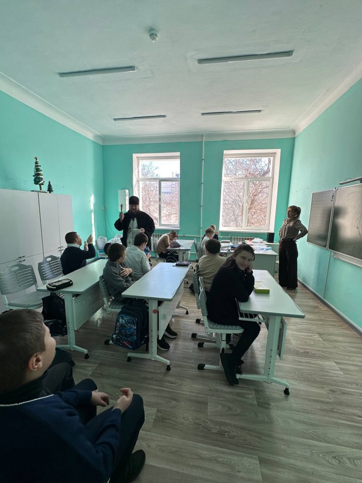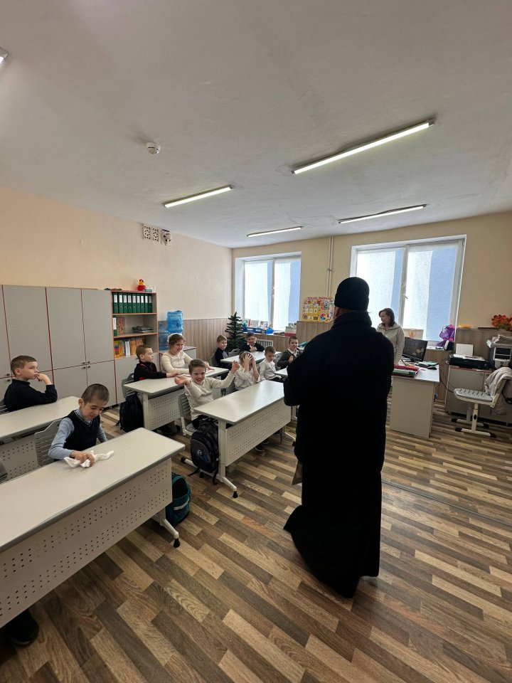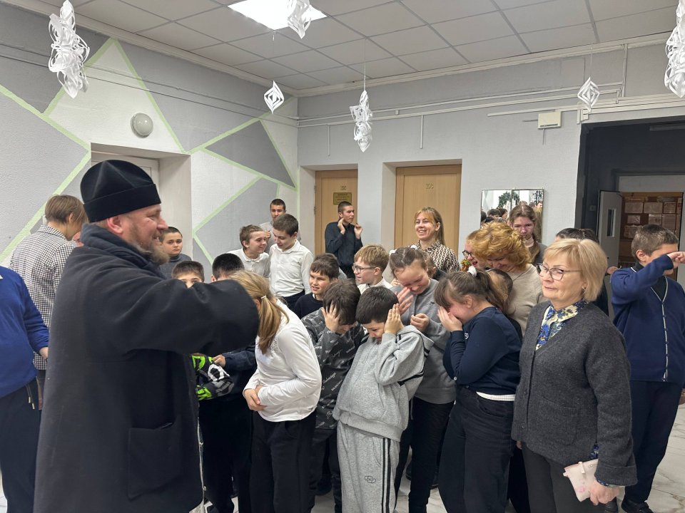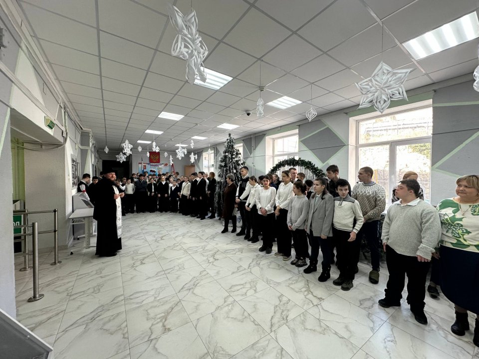 Священники поздравили детей и педагогов с великим праздником Крещения Господня, рассказали о событии праздника, о святой крещенской воде, ее свойствах и правилах использования.