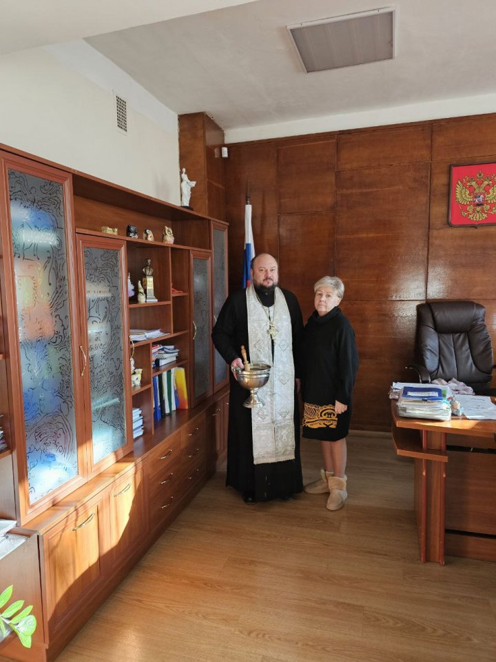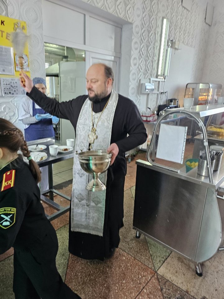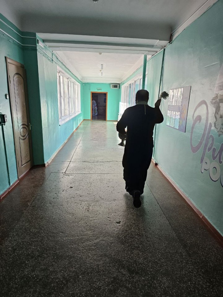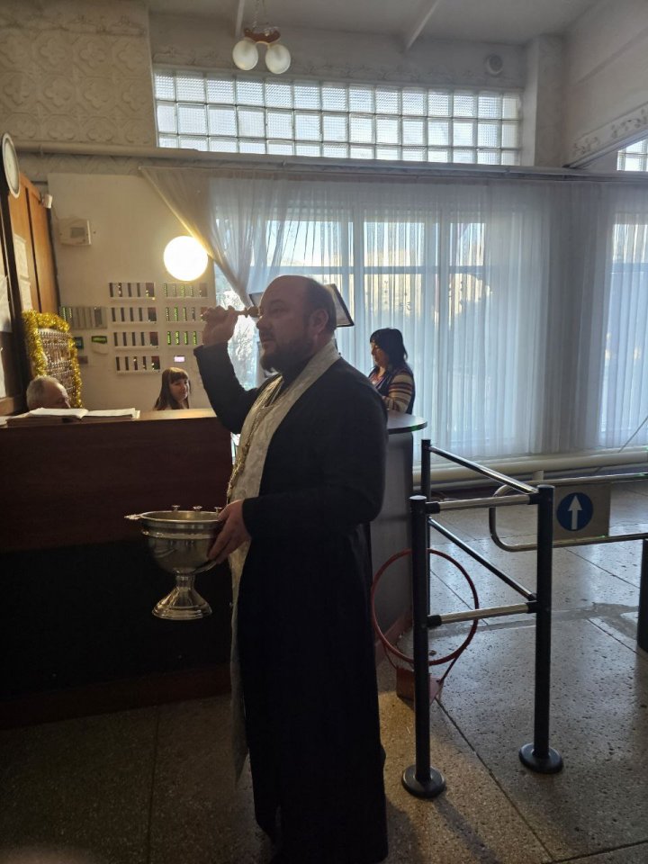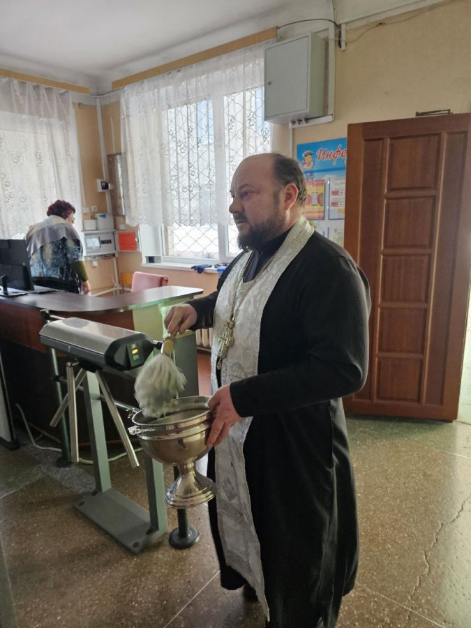 Священник окропил крещенской водой помещения 22-й школы