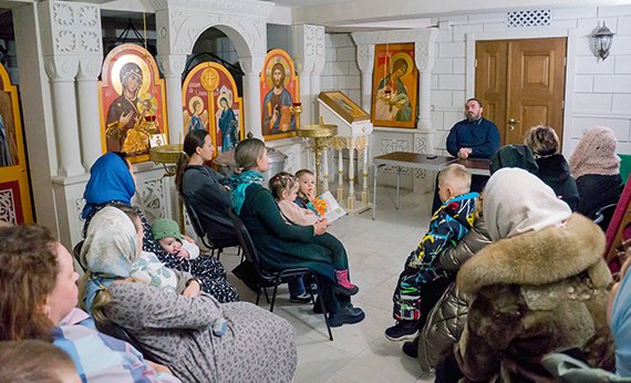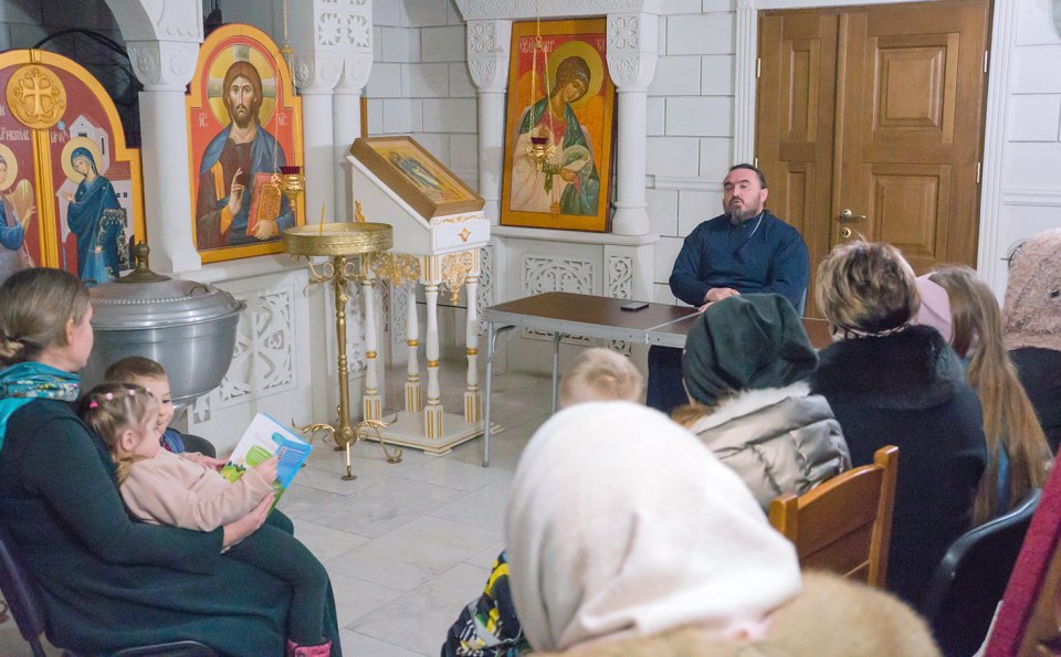 В январе прошлого года в храме Архистратига Божия Михаила образовалось молодежное сообщество, которое собрало в себя активных молодых мам и пап храма, с которыми настоятель протоиерей Игорь Тышкевич, на регулярной основе, проводит беседы после воскресной Божественной литургии.