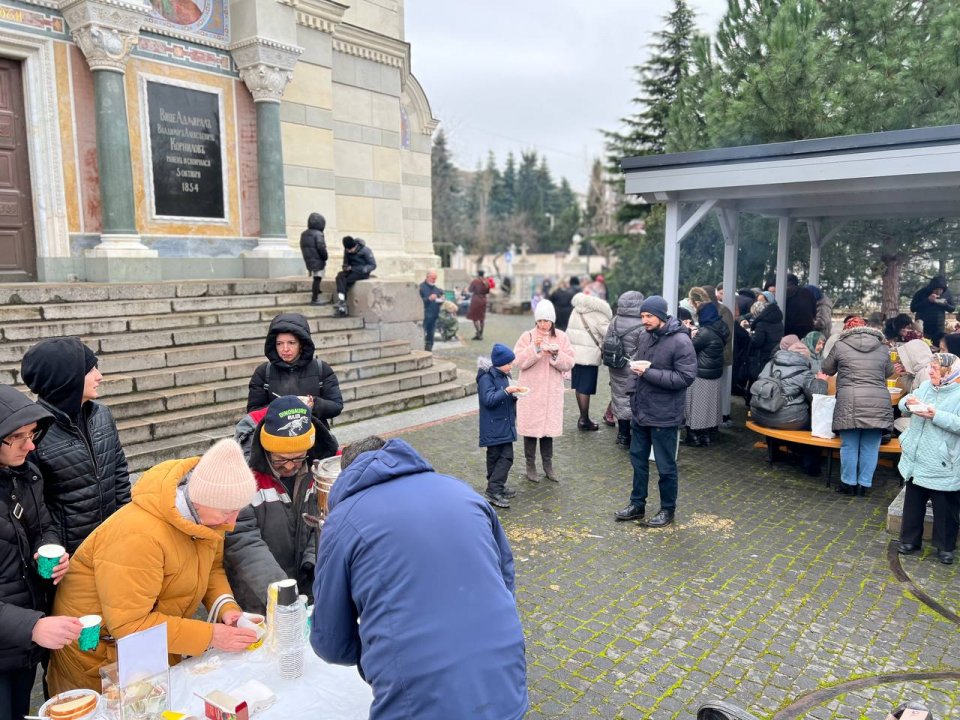 25 января, в воскресный день, по окончании Божественной литургии в Свято-Владимирском соборе-усыпальницы адмиралов, духовенство и прихожане, по доброй традиции, собрались на соборной площади, где всех уже ждала ароматная каша с тушенкой и дымился самовар.