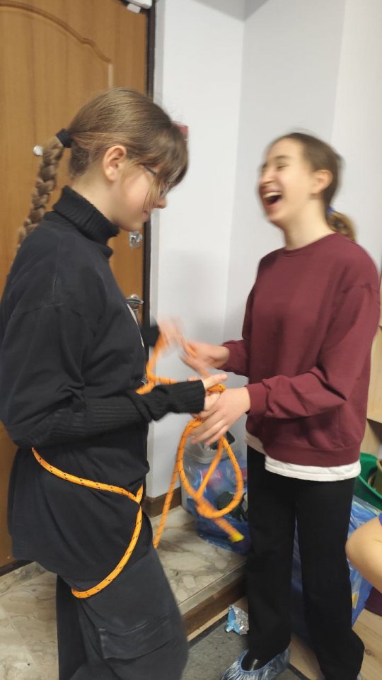 Вторая часть занятия была посвящена туристическим навыкам: учились вязать узлы и мастерить обвязки. Не обошлось без дружного поздравления нашего Максима с прошедшим днём рождения